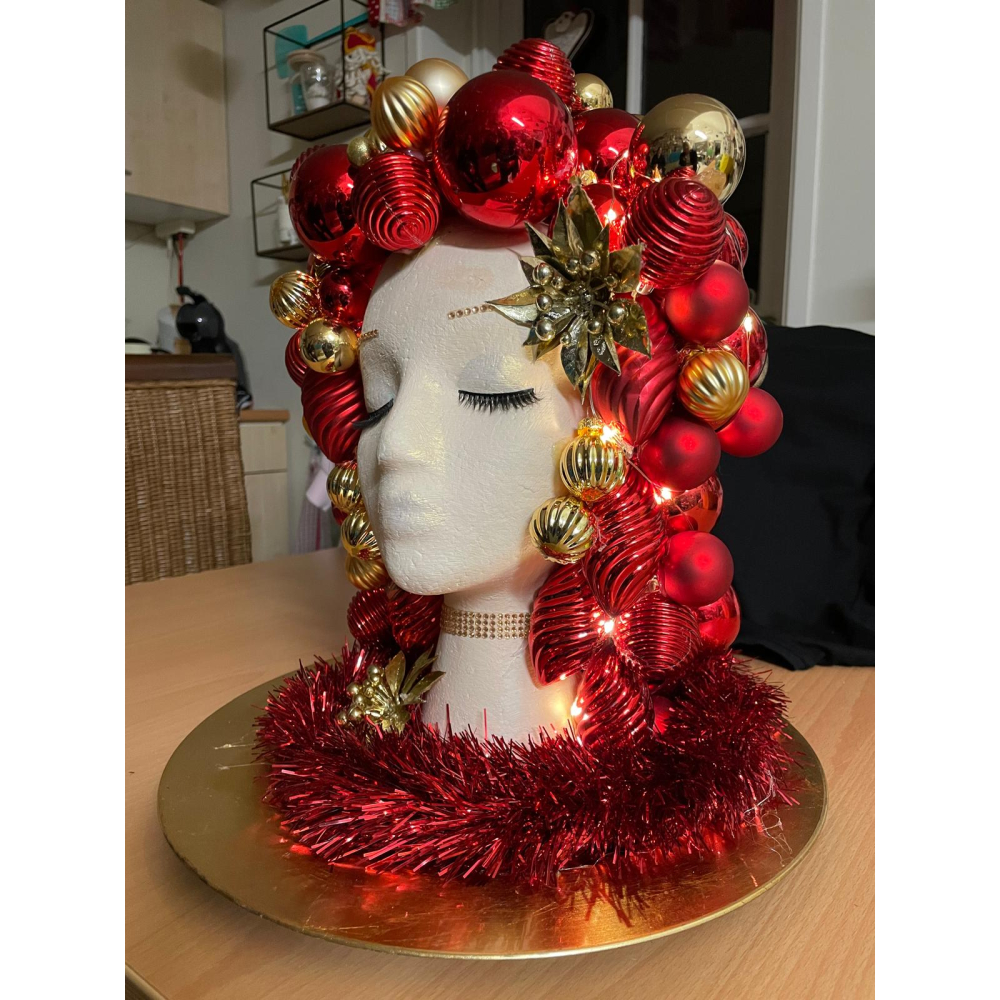Tijdens deze workshop ga je een styropor hoofd bekleden met kerstballen.