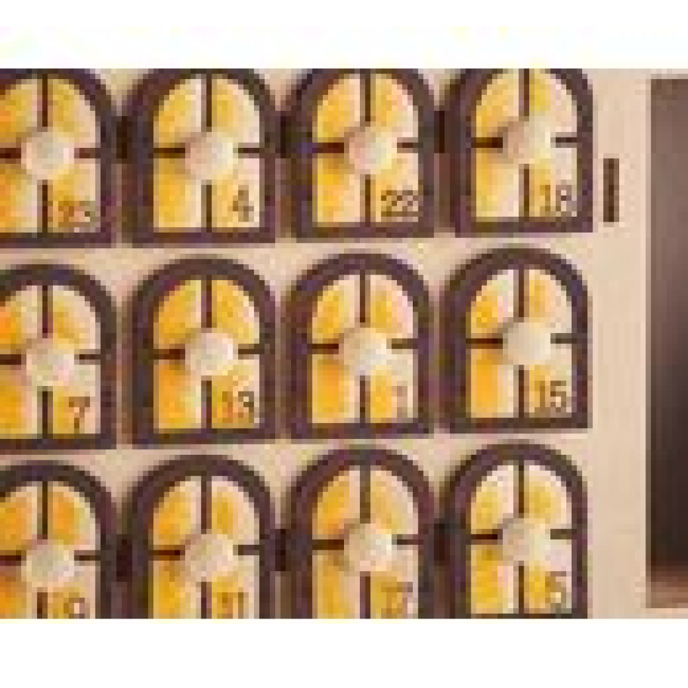 "VBS Adventskalender Huis" lengte 37,7 cm, breedte 8,8 cm en hoogte 48 cm. Een prachtig product van het huis VBS! Het huis is voorzien van 24 genummerde laden met een binnenmaat van ca. 2,7 cm x 3,6 cm en een hoogte van 2,9 cm. In de gevel bevinden zich kleine ramen en in de gevel 2 openingen met een afmeting van ca. 14,5 cm x 12,8 cm en een diepte van ca. 6,9 cm. Het materiaal is multiplex