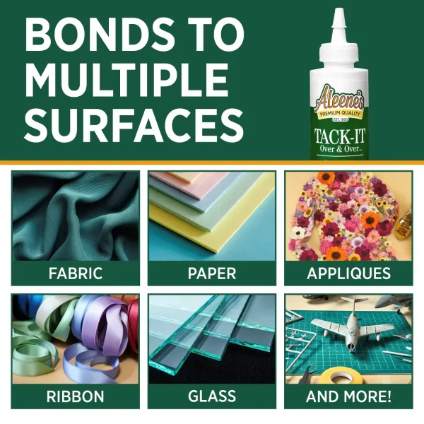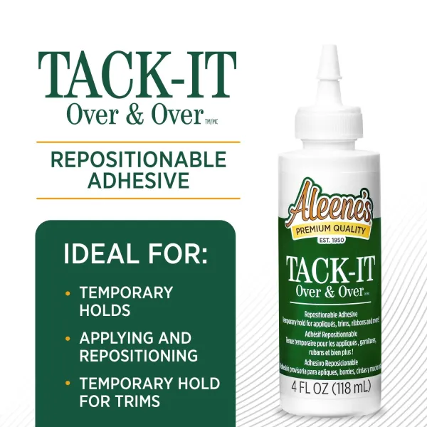 Aleene's Tack-It Over & Over herpositioneerbare lijm (118ml) biedt een kleverige grip voor het tijdelijk vastplakken van items zoals applicaties, versieringen, knopen en nog veel meer op diverse oppervlakken. Deze niet-giftige, herpositioneerbare lijm droogt transparant en flexibel op; de veelzijdigheid en tijdelijke kleefkracht maken hem ook ideaal voor het maken van je eigen DIY glue dots!