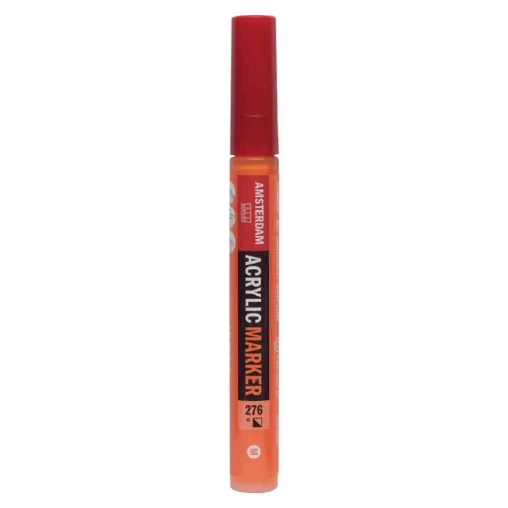 Amsterdam acrylmarker in Azo-Oranje (276) is een semi-dekkende kleur zonder lichtechtheid (˚).