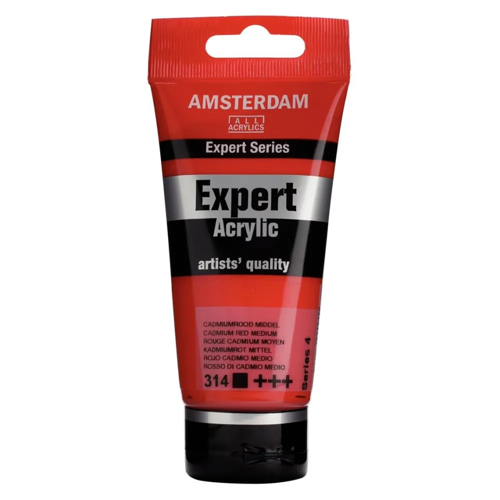 Amsterdam Expert Series acrylverf in Cadmiumrood Middel (314) is een dekkende verf met uitstekende lichtechtheid (+++).