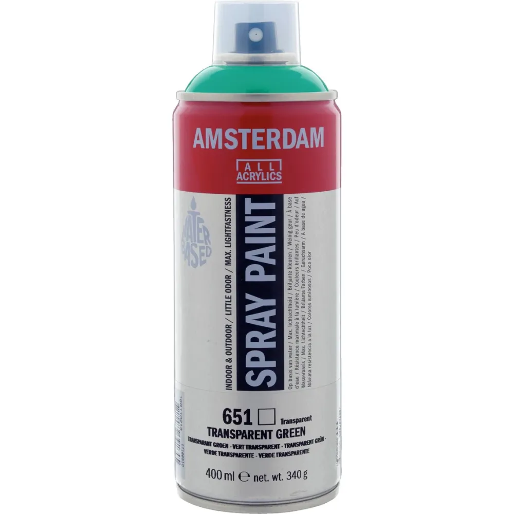 Amsterdam spray paint in Transparant Groen (651) is een transparante verf met uitstekende lichtechtheid (+++).