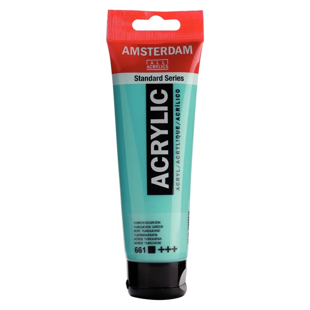 Amsterdam Standard Series acrylverf in Turkooisgroen (661) is een dekkende verf met uitstekende lichtechtheid (+++).