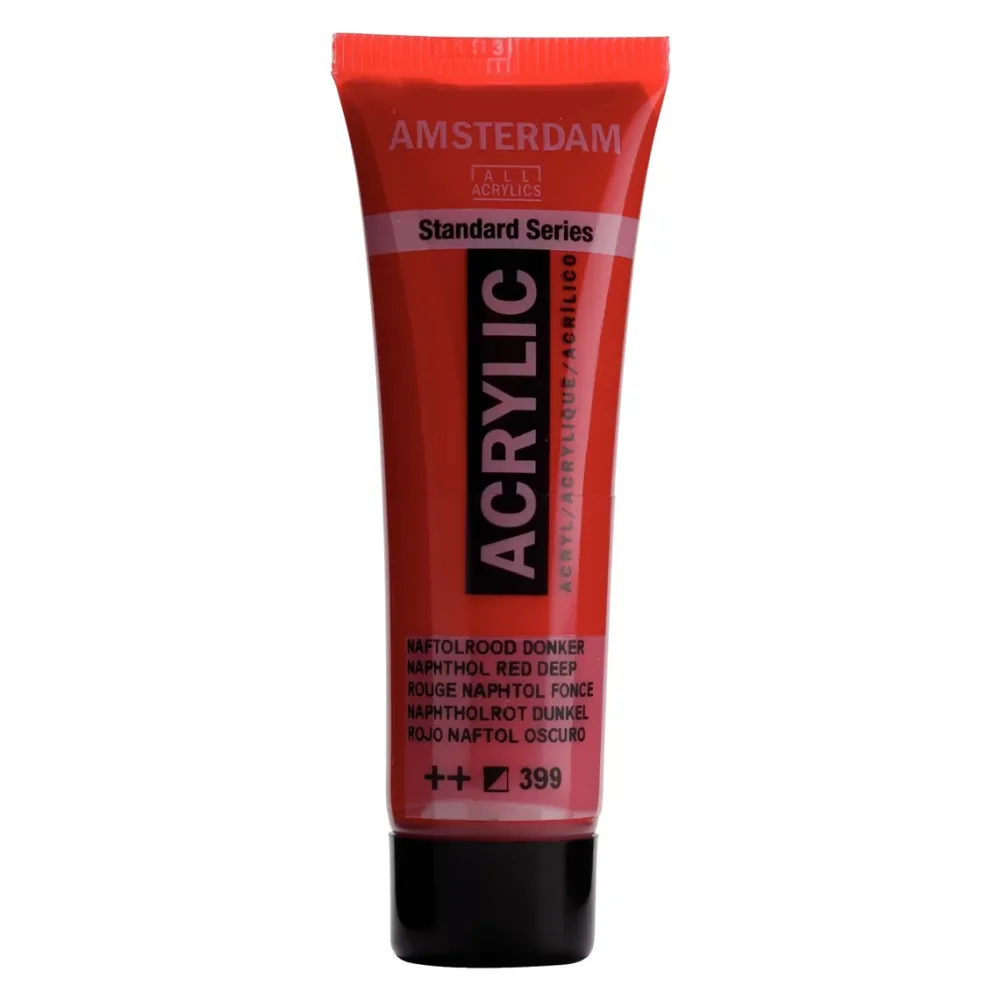 Amsterdam Standard Series acrylverf in Naftolrood Donker (399) is een semi-dekkende verf met zeer goede lichtechtheid (++).