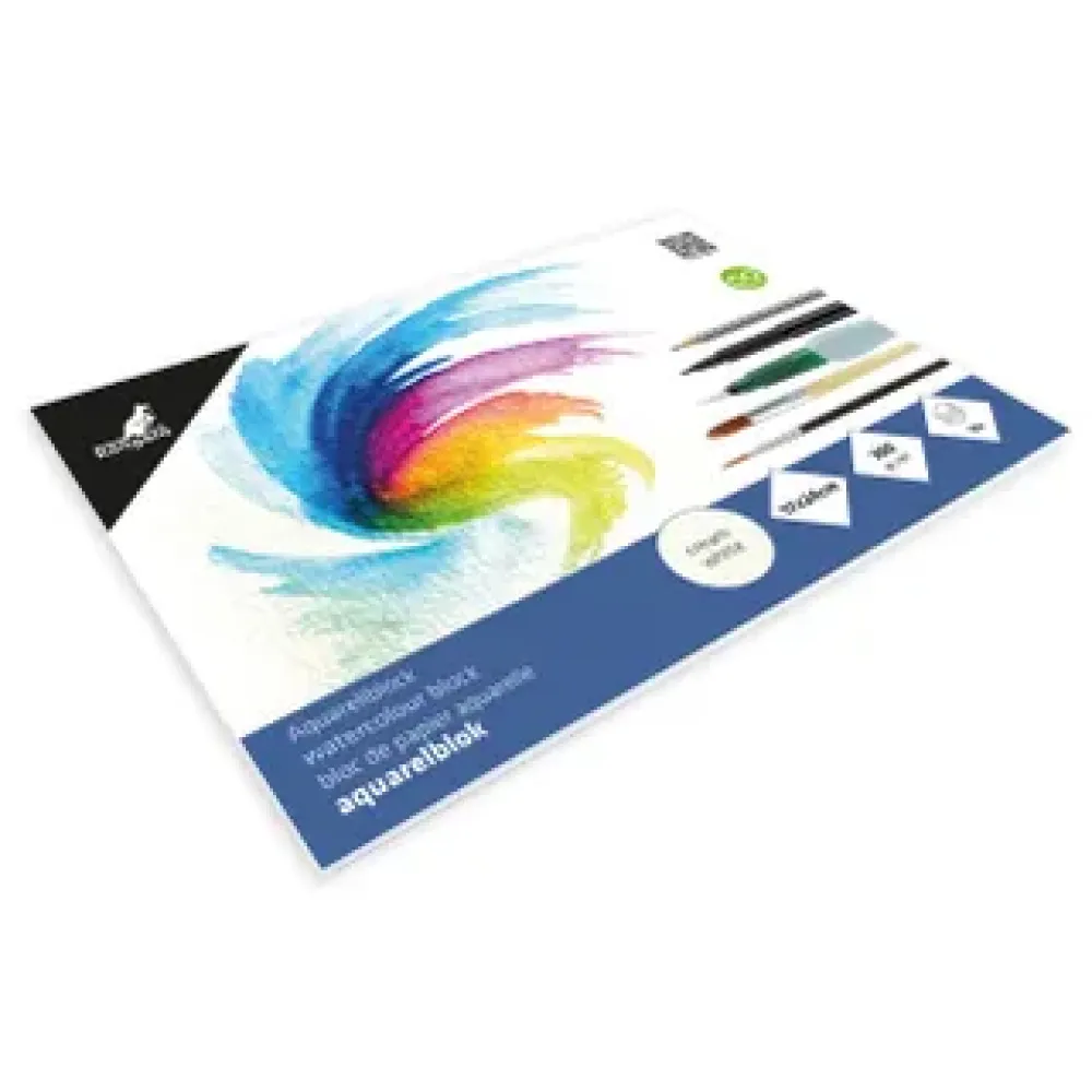 Kangaro blok met mooi roomwit aquarelpapier, eenzijdig gelijmd aan de lange zijde, 300 grams papier. Inhoud 16 vel. Het papier is uitermate geschikt voor aquarel, acryl, inkt, potlood, gouache en houtskool. Formaat: 17x24cm. Zuurvrij papier.