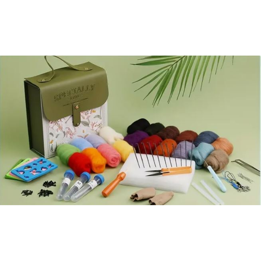 Naalvilten set, wol roving 20 kleuren set. Naaldvilten starterskit vilten met gereedschap en mallen in draagbare opbergdoos.