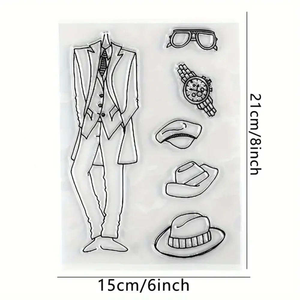De stempelset bestaat uit 6 delen.