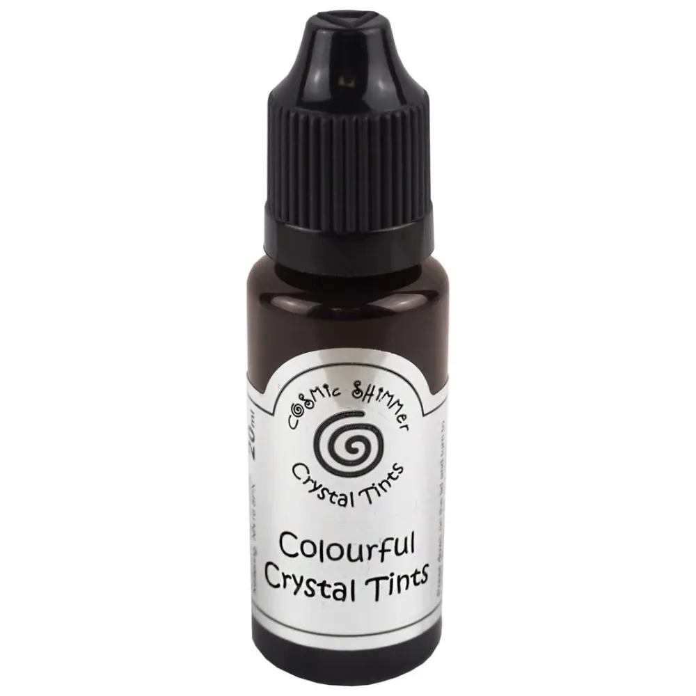 Cosmic Shimmer Colourful Crystal Tints. A colourful varnish lacquer. Use the nozzle to create raised lines, shapes and dots or by using a soft flat brush this product can also be brushed over craft work to create a translucent effect. 20ml bottle.