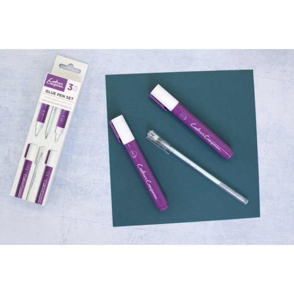 Maak je klaar om te gloeien en creëer met gemak metallic effecten met de Crafter's Companion Glue Pen Set. Voor vergulde letters, kleine folieversieringen en glinsterende ontwerpen is de Crafter' Companion Glue Pen-set ideaal. De kit is ontworpen voor het nauwkeurig en ingewikkeld aanbrengen van lijm en bevat drie lijmpennen met verschillende puntgroottes, zodat je gemakkelijk kunt schrijven, tekenen en krabbelen voordat je je glinsterende afwerking toevoegt! De specialistische formulering van deze lijm zorgt ervoor dat wanneer toepassingen van de lijm zijn opgedroogd, de lijm zeer lang kleverig blijft. Het heeft ook een blauw uiterlijk wanneer het wordt aangebracht, zodat u uw belettering of ontwerp op de pagina kunt zien. Kies gewoon de pen die perfect is voor uw project! De balpen kan worden gebruikt om precieze, delicate details toe te voegen, de kogelpunt kan worden gebruikt voor een iets bredere toepassing en de beitelpunt heeft een schuine punt die hem ideaal maakt voor het toevoegen van randen. Crafter's Companion Glue Pens zijn perfect om te gebruiken met zoveel mediums, waaronder folie, glitter en verguldselvlokken! Met zoveel verbluffende tinten om uit te kiezen, elk met een geweldige hoge glans, waarom zou u niet de volledige Luxury Gilding Flakes-collectie van Spectrum Noir bekijken en vergulden eens proberen? De precieze toepassing van lijmpennen maakt ze ook ideaal voor het bouwen van papercraft-dozen en dimensionale projecten. Voeg kleine puntjes of lijnen lijm toe, precies op de plek die je nodig hebt om zonder rommel vast te zetten!