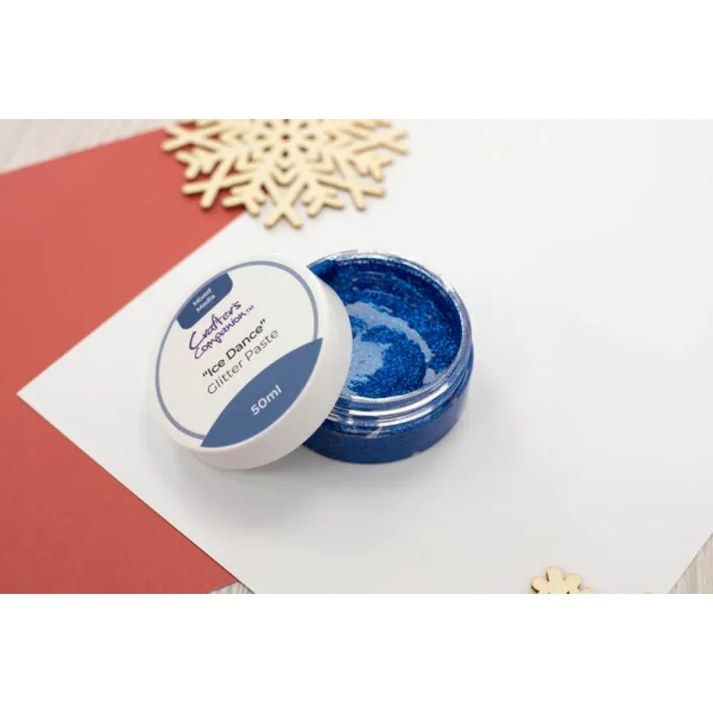 Give your Christmas cards and crafts extra magic and sparkle with Glitter Paste from Crafter’s Companion! From berry red and holly green to icy silver and warm gold, each festive colour in this craft range adds enchanting sparkle and dimensional texture to Christmas cards, hand decorations, home decor and more! Our versatile Glitter Pastes can be used on a range of surfaces. Combine with our range of Stencil Sets to create sparkling, Christmas-themed designs and mix together for truly stunning ombré effects! Frozen beauty - The Crafter’s Companion Ice Dance Glitter Paste is a cool and shimmering shade of blue - perfect for adding light and snowy magic to your Christmas and winter scenes! Each 50ml pot is filled with non-toxic, water based paste that’s packed with premium quality high-shine, fine glitter for a stunning and shimmering finish. Multi-surface application - Ideal for mixed-media holiday craft projects, our Glitter Paste can be applied to a range of surfaces and materials. Explore with card, paper, wood, glass, canvas, terracotta and more! Glimmering festive makes- Have fun with Glitter Paste to decorate gifts, keepsakes and ornaments as well as cards, gift bags and papercraft projects. From shimmering vases and tealight holders to personalised canvas tote bags and wall hangings - delight friends and family and fill your home with sparkle this holiday season! Easy and fun to use with stencils - the fine glitter used in our paste makes it ideal to use with stencils - so you can be sure of a shimmering finish from edge to edge. Simply arrange and secure your stencil onto your chosen material, spread your glitter paste over the stencil, leave to dry and peel back to reveal a stunning, sparkling design! Crafter’s Companion Stencil Sets are designed to work perfectly with this range, featuring Christmas-themed backgrounds, centrepieces and border designs. Explore new effects - When stencilling, why not mix and combine colours to create a graduated ombre look? With six colours to choose from, take a look at the full range of Crafter’s Companion Glitter Paste to find your perfect pair. Professional results - All abilities can get creative with Glitter Paste to create cards, gifts and decorations that are sure to impress friends and family. For best results, we recommend using Crafter’s Companion Palette Knives ,specially designed for detailed application, mixing and wide-surface application.