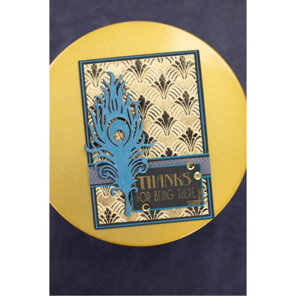 Verhoog je papercraft-spel - Creëer een prachtig, verhoogd en reliëfontwerp in een vintage jaren 20-stijl met de Floral Deco 3D Embossing Folder. Ambacht met de elegantie van de jaren 1920 - het klassieke waaierpatroon in art-decostijl is de perfecte achtergrond voor themakaarten, geschenkverpakkingen, uitnodigingen en meer. 3D-embossingmap om een reliëfpatroon van 15 x 10 cm te maken. Reliëfdetail - U kunt ook stansen of een schaar gebruiken om het reliëfontwerp uit te knippen om een kleinere decoratie aan uw papercraft-projecten toe te voegen. Eenvoudig te gebruiken - Elke knutselaar kan deze map gebruiken om een ongelooflijk 3D-effect te creëren. Om de reliëfontwerpen te maken, hoef je alleen maar de door jou gekozen kaart of paperstock in de map te plaatsen, de map tussen een magnetische vulring en twee snijplaten te klemmen en het geheel door je stansmachine te rollen. Kleur en personaliseer - Door kleur toe te voegen aan het verhoogde ontwerp met reliëf, komt het echt tot leven! Vind je perfecte stempelkussenkleur, of gebruik glinsterende verguldingswas of de Roaring Twenties Gilding Flake-kit voor een luxe uitstraling. Onderdeel van de Sara Signature Roaring Twenties-collectie - combineer met het volledige assortiment stempels, stansen, embossingfolders en glinsterende decoraties om samenhangende projecten te maken. De Sara Signature Roaring Twenties-collectie brengt alle glitter en glamour van het Art Deco-tijdperk in sprankelende stijl naar je kaarten en knutselwerkjes. Deze collectie papier met folie en patronen, stansen, mappen, stempels en papierversieringen nodigen u uit om de elegantie en Great Gatsby-achtige charme van de jaren 1920 te kanaliseren. En voor een extra vleugje razzle-dazzle bevat het assortiment pailletten, organza lint en een kit met vergulde vlokken. Zo kun je die verjaardagskaarten nog specialer maken, foto's omtoveren tot de plakboekpagina van de eeuw en uitnodigingen maken die absoluut niemand zou kunnen afslaan!