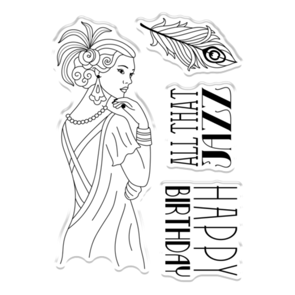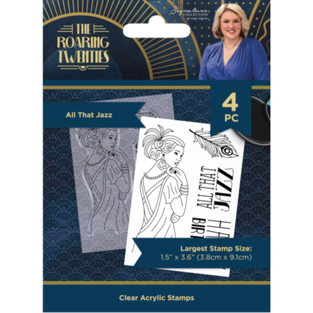 Stempel en kleur een middelpunt van de Roaring Twenties - de All that Jazz-set bevat vier stempels om een schetsontwerp te maken van een glamoureuze vrouw uit de jaren 1920 plus thema-sentimenten en een weelderige pauwenveerdecoratie. Aanpassen aan uw thema - Dankzij het omtrekontwerp kunt u kleur toevoegen in elke gewenste stijl of effect! Perfect voor zoveel gelegenheden - Thema-sentimenten 'All that Jazz' en 'Happy Birthday' in een vintage lettertype in de stijl van de jaren 1920 zijn ideaal voor verjaardagen en allerlei soorten feesten. Eenvoudig te gebruiken - Deze stempels zijn gemaakt van helder acryl van de hoogste kwaliteit, zodat u recht door de stempel heen kunt kijken om de afbeelding nauwkeurig uit te lijnen. Plak gewoon je gekozen stempel op een acrylblok of Rock-a-Block en stempelen maar! U bent verzekerd van nauwkeurige vertoningen, elke keer weer. Vlekvrij en nauwkeurig - Gebruik met Spectrum Noir Finesse alcoholbestendige stempelkussens of Spectrum Noir Finesse waterdichte stempelkussens. Of je nu kleur toevoegt met alcoholmarkers of een sfeervol aquarelmedium, de gestempelde omtrek blijft helder en vlekvrij! Onderdeel van de Sara Signature Roaring Twenties-collectie - combineer met het volledige assortiment stempels, stansen, embossingfolders en glinsterende decoraties om samenhangende projecten te maken. De Sara Signature Roaring Twenties-collectie brengt alle glitter en glamour van het Art Deco-tijdperk in sprankelende stijl naar je kaarten en knutselwerkjes. Deze collectie papier met folie en patronen, stansen, mappen, stempels en papierversieringen nodigen u uit om de elegantie en Great Gatsby-achtige charme van de jaren 1920 te kanaliseren. En voor een extra vleugje razzle-dazzle bevat het assortiment pailletten, organza lint en een kit met vergulde vlokken. Zo kun je die verjaardagskaarten nog specialer maken, foto's omtoveren tot de plakboekpagina van de eeuw en uitnodigingen maken die absoluut niemand zou kunnen afslaan!