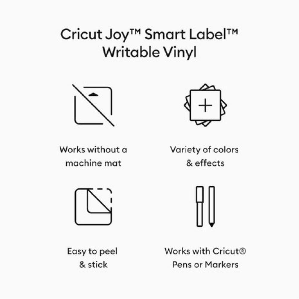 Het organiseren van een keuken, badkamer of speelkamer is net zo eenvoudig als schrijven, knippen, schillen en plakken met Permanent Smart Label Writable Vinyl. Dit slimme materiaal werkt zonder mat, dus je kunt gewoon laden en gaan met je Cricut Joy-snijmachine. Blader door professionele labelontwerpen of maak uw eigen ontwerp in de Cricut Design Space-app. Gebruik met compatibele Cricut Joy-pennen en -markers. Cricut Joy Gel-pennen worden niet aanbevolen. Kenmerken: 4 vellen 5,5 inch x 13 inch (14 cm x 33 cm). Werkt zonder snijmat - gewoon laden en gaan! Personaliseer met Cricut Joy-pennen en -stiften. Niet gebruiken met transfertape. Voor Cricut Joy-snijmachine. Compatibiliteit: Cricut Joy.