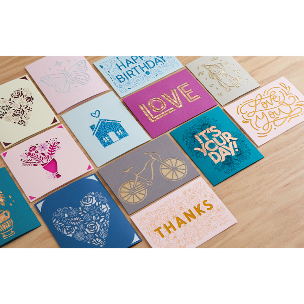 Te gebruiken met Cricut-insteekkaarten (inclusief folietransfer) en Cricut Cutaway-kaarten.