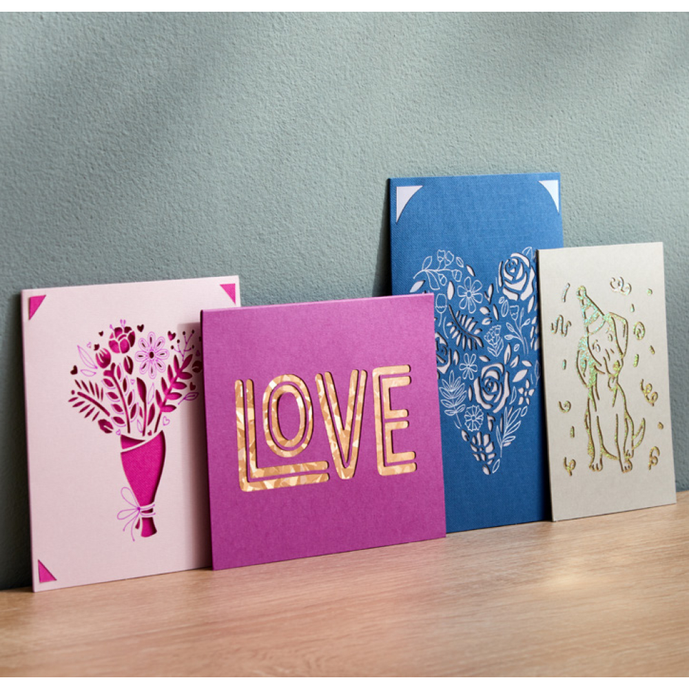 Maak tot wel 4 kaarten tegelijk met Cricut®-mat voor kaarten – 2 x 2. Nu kunnen Cricut Explore®- en Cricut Maker®-apparaten kaarten maken met een mat die geschikt is voor alle Cricut-kaartformaten