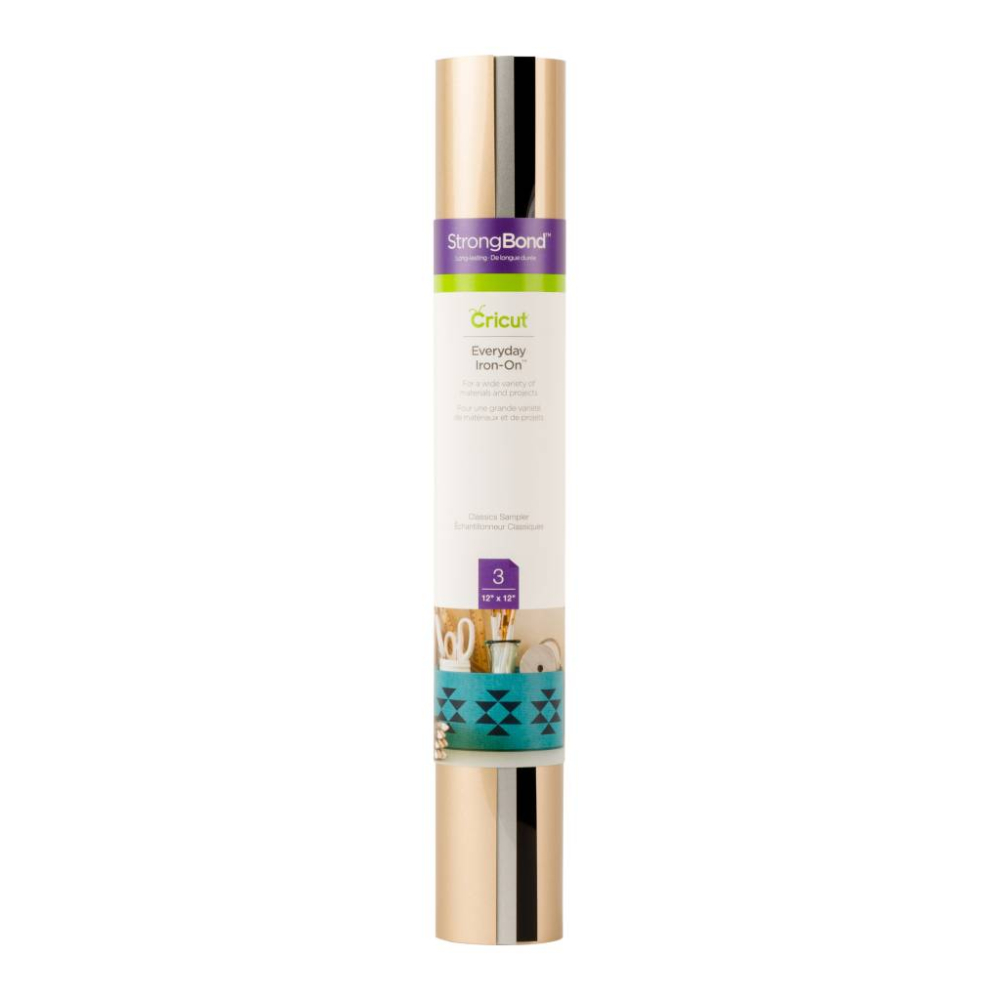 Overtreft meer dan 50 wasbeurten! * Elke dag Iron-On werkt fantastisch met de meest uiteenlopende basismaterialen, waaronder hout! Ingewikkelde ontwerpen zijn eenvoudig te snijden met uw Cricut-machine, en u kunt gemakkelijk wieden voor een vlekkeloze toepassing. Maak een T-shirt met een inspirerende quote, ontwerp een hartverwarmend interieur, versier accessoires met unieke ontwerpen en maak handgemaakte cadeaus die een blijvende indruk achterlaten. Gebruik één kleur of laag tot drie voor opvallende patronen en projecten. Voor gebruik met alle Cricut® snijmachines. Gebruik Cricut EasyPress ™ voor een vlekkeloze strijkapplicatie. Of breng aan met strijkijzer. Onderhoudsinstructies: Laat 24 uur na het aanbrengen voor het wassen. Binnenstebuiten wassen en drogen. Niet bleken. Als u moet strijken, strijk dan alleen op de achterkant van het kledingstuk. Uitstekende resultaten op de meest uiteenlopende materialen en projecten, gaat langer dan 50 wasbeurten mee! machines. 3 vellen 12 "x 12" in goud, zwart, zilver