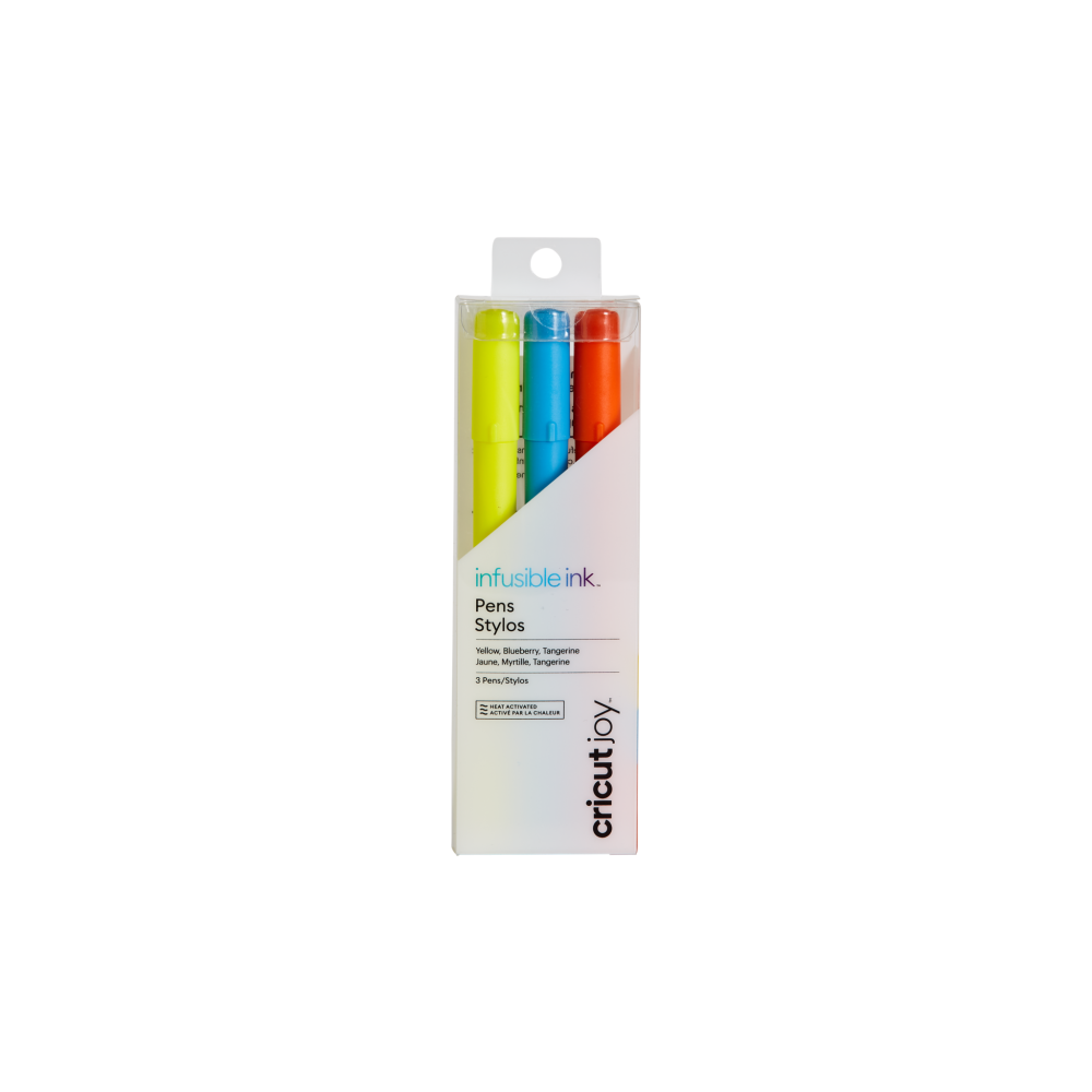 Voeg warmte toe en zie hoe uw ontwerpen bloeien in levendige, permanente transfers van professionele kwaliteit op elke compatibele blanco inkt. Gebruik uw Cricut Joy-machine en deze vijf hittepers-transferpennen om te tekenen of schrijven op laser-kopieerpapier, of teken uw ontwerp uit de vrije hand voor een uniek tintje. Voeg dan warmte en voilà toe! De resultaten zijn heldere, mooie, naadloos vloeiende transfers die nooit schilferen, schillen, kreuken of barsten! Voor gebruik met Cricut Joy. Wat is het Infusible Ink-proces? In tegenstelling tot een opstrijktransfer of vinyltoepassing, waarbij kunstwerken met lijm op een compatibel materiaal worden bevestigd, wordt een warmteoverdracht van Infusible Ink één met het materiaal zelf. 3 fijne punt (0.4) pennen in geel, bosbes, mandarijn