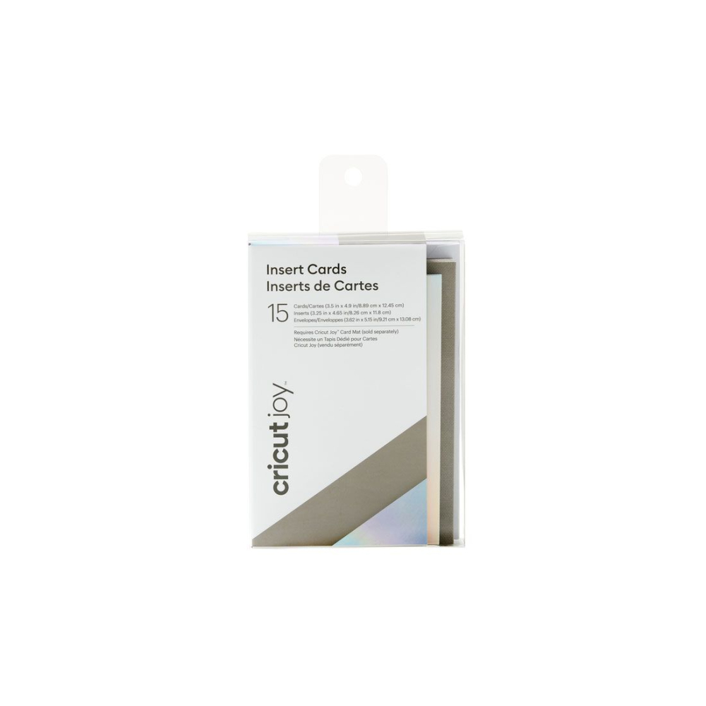 Snelle, gepersonaliseerde wenskaarten met grote impact binnen handbereik met invoegkaarten voor uw Cricut Joy-snijmachine. Het ingenieuze lijmvrije ontwerp zorgt voor tweekleurige, met diepte gevulde kaarten zonder geknoei of gedoe. Knip ingewikkelde en betekenisvolle woorden en afbeeldingen in de voorkant van de kaart om de prachtige invoegkleur zichtbaar te maken. Deze kaarten van A1-formaat bevatten witte enveloppen en zijn verkrijgbaar in talloze kleuren om elke kaartontvanger op uw lijst te plezieren! Voor gebruik met Cricut Joy.