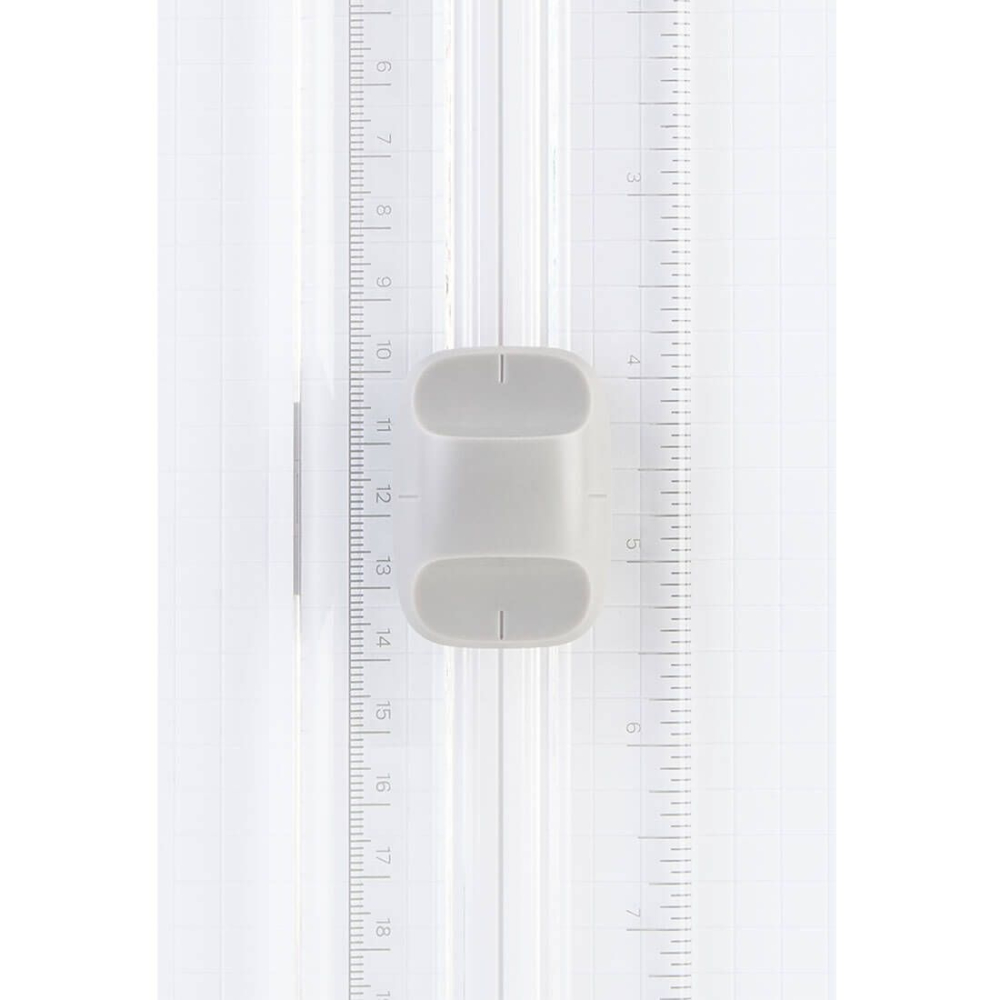 Het is een makkie om precies rechte lijnen te knippen wanneer u de draagbare trimmer van 12 inch (30,5 cm) gebruikt. Een uniek, gemakkelijk glijdend messensysteem levert altijd nauwkeurige, rechte sneden op, terwijl een ergonomische, op maat gemaakte handgreep zorgt voor een soepele grip over honderden sneden. De dubbel scharnierende rail maakt het eenvoudig om snel materialen te laden, te meten en te snijden van beide kanten. Continue meetmarkeringen, linialen in inches en centimeters en ¼ "rastermarkeringen - samen met een 15" (38 cm) zwaai -out arm - helpt u bij het meten voor nauwkeurige resultaten Bewaar vervangende mesjes in de handige opbergvakken aan de onderkant van de trimmer. Vroeger 2002641