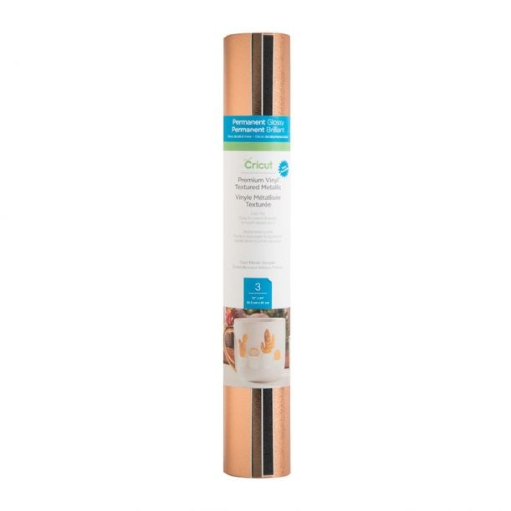 Krijg dat metallic bladeffect met deze gestructureerde, geaderde en glanzende folieafwerking. En het blijft echt plakken! Elk project verloopt vlot als je Permanent Premium Vinyl gebruikt. Dit geweldige vinyl ligt plat op je snijmat - geen tunnels of bubbels. Snijd je ontwerp, wiet met gemak en breng met ontzag aan. Zelfs uw meest ingewikkelde ontwerpen scheiden moeiteloos van het draagvel voor een perfecte toepassing. Heerlijk waterbestendig, permanent premium vinyl werkt geweldig voor glaswerk en interieurdecoratie. Voor gebruik met alle Cricut snijmachines. 3 vellen 12 "x 24" (30,5 cm x 61 cm) in chocolade, onyx, koper
