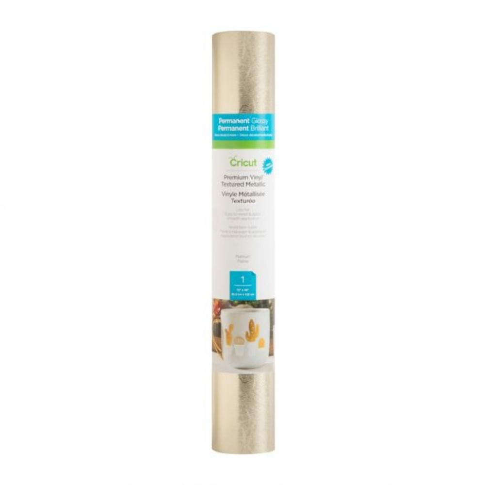 Krijg dat metallic bladeffect met deze gestructureerde, geaderde en glanzende folieafwerking. En het blijft echt hangen! Elk project verloopt vlot als je Permanent Premium Vinyl gebruikt. Dit geweldige vinyl ligt plat op je snijmat - geen tunnels of bubbels. Snijd je ontwerp, wiet gemakkelijk en breng met ontzag aan. Zelfs uw meest ingewikkelde ontwerpen scheiden moeiteloos van het draagvel voor een perfecte toepassing. Heerlijk waterbestendig, permanent premium vinyl werkt geweldig voor glaswerk en binnendecoratie. Voor gebruik met alle Cricut snijmachines. 1 rol 12 "x 48" (30,5 cm x 122 cm)