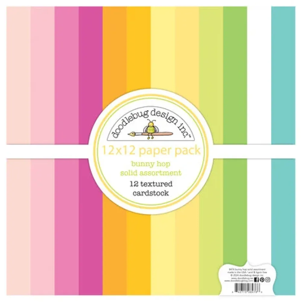 Doodlebug Design Bunny Hop 12x12 Inch Textured Cardstock Assortment Pack (8476)