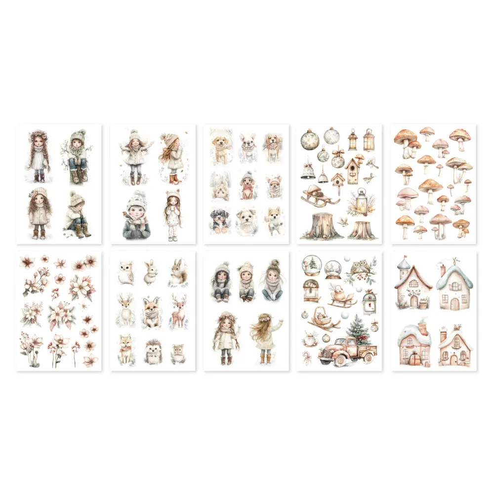 Collage Paper Set A4 Winter Wonderland. 10 sheets A4, 20 backgrounds 20x20cm (10 designs x2). 138 gr.