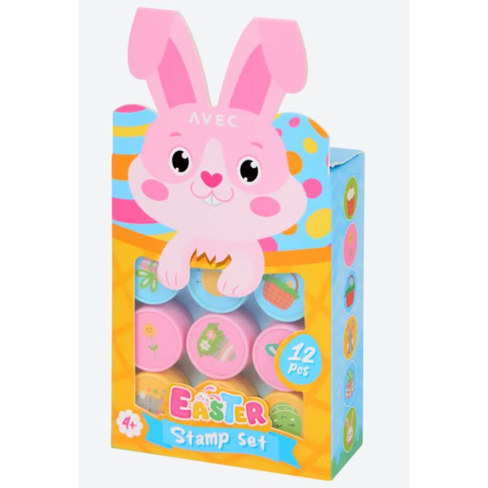 Versier je tekening of kaart met deze vrolijke paasstempels. De haasjes kijken met een knipoog toe. Niet alleen met Pasen, maar het hele jaar door versier jij elk stukje papier met een stempelafdruk van regenbogen of lentebloemetjes. Aan de buitenkant van elk stempeltje zie je welke kleur ze hebben.