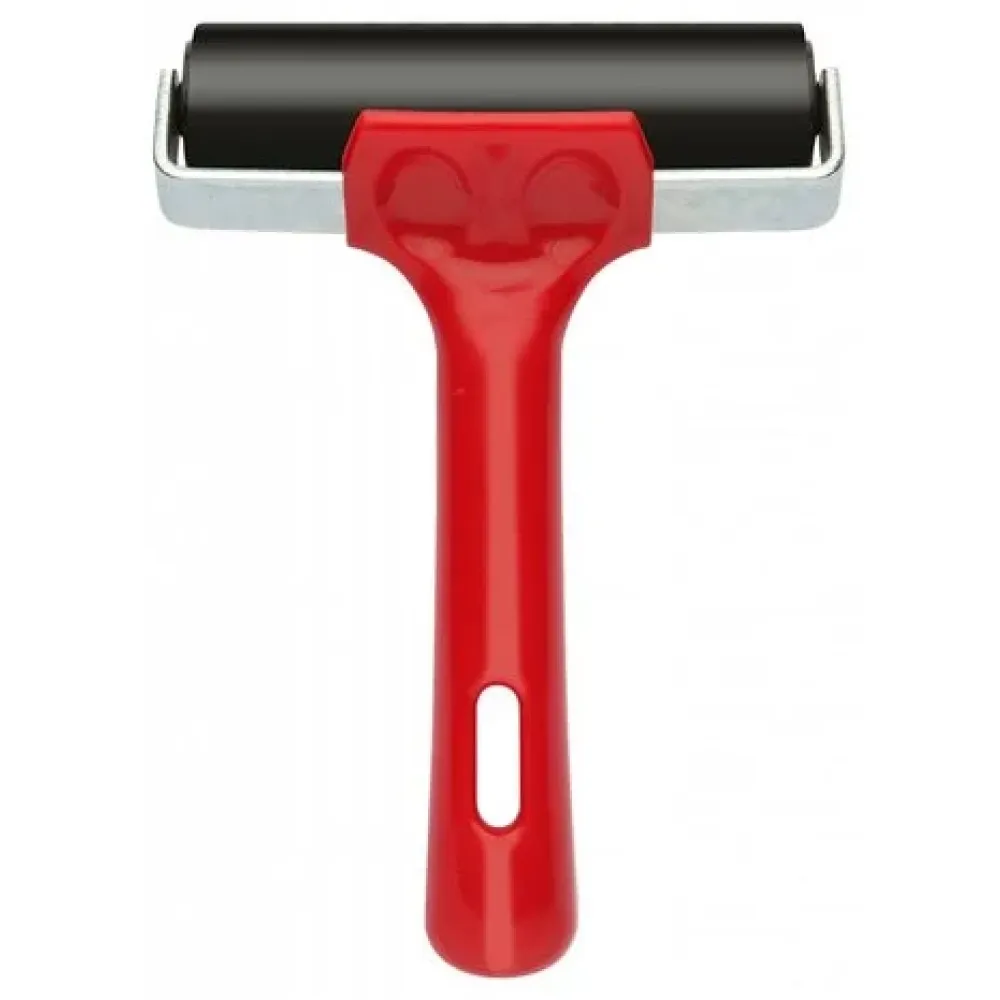 This sturdy rubber roller is perfect for printmaking and a default choice for education and purchasing authorities worldwide. The rigid body and steel brackets give strength to the durable 70 shore EPDM rubber roller enabling heavy use, out-performing natural rubber. Suitable for use with both water based and oil based ink, and also resistant to solvents. The handle is manufactured from polypropylene with a hanging slot. The roller has self-lubricating nylon bearings, EPDM rubber surface, aluminium core and a continuous steel shaft. It is designed so that wet rollers can be turned over with the handle doubling as a stand for cleaner working. These versatile rollers can be used for a variety of purposes other than block printing, including scrapbooking,