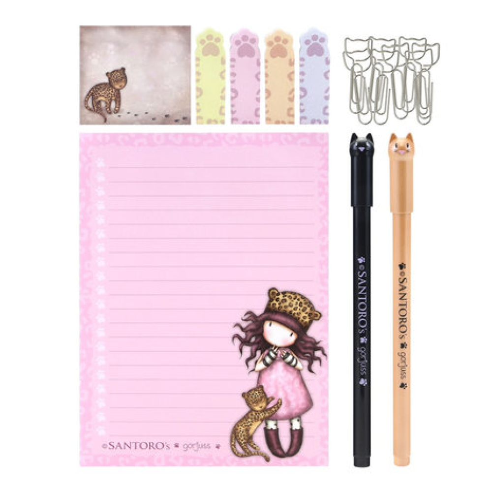 Keep your desk organised with this adorable Gorjuss Wild set! With sticky notes, cat paper clips and 2 needlepoint pens, you have all you need to start your studies. Featuring the playful Purrrrfect Love artwork. Key Features: 150 sticky notes. Notepad with 80 sheets. 8 cat paper clips. 2 needlepoint pens.