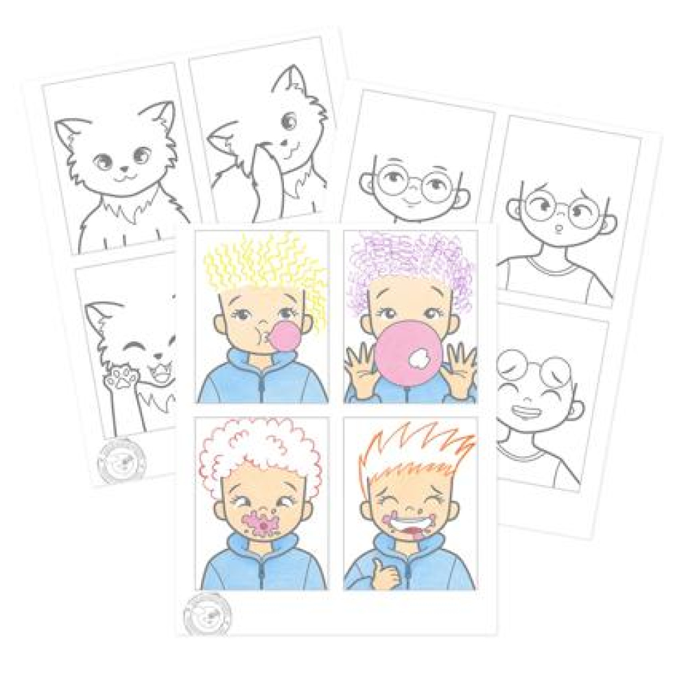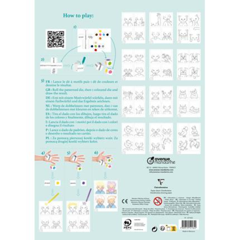 THROW THE DICES AND COLOUR: a notebook for colouring and for having fun; assemble your dice, throw them and they'll tell you what pattern and colour to draw on the characters in the notebook! A FUN NOTEBOOK: with photobooth designs to complete as you play, this notebook is perfect as a gift for one or more children at a birthday party, anniversary or simple creative activity. CONTENTS: 3 paper dice to assemble and stick together, 12 photobooth designs repeated 2 times, the horizontal spiral makes drawing easier; roll the dice to find out which shape and colour to colour in. CLAIREFONTAINE PAPER: With your pencils, felt-tips and brushes, Clairefontaine 160 g drawing paper for optimum quality and a perfect finish once the activity is over, high quality paper certified (PEFC). / ATTENTIVE TO NICE THINGS: Avenue Mandarine supports children and parents with elegant, design-led edutainment games. We offer fresh colours to encourage discovery, play and the awakening of the senses in children aged 2 to 10.