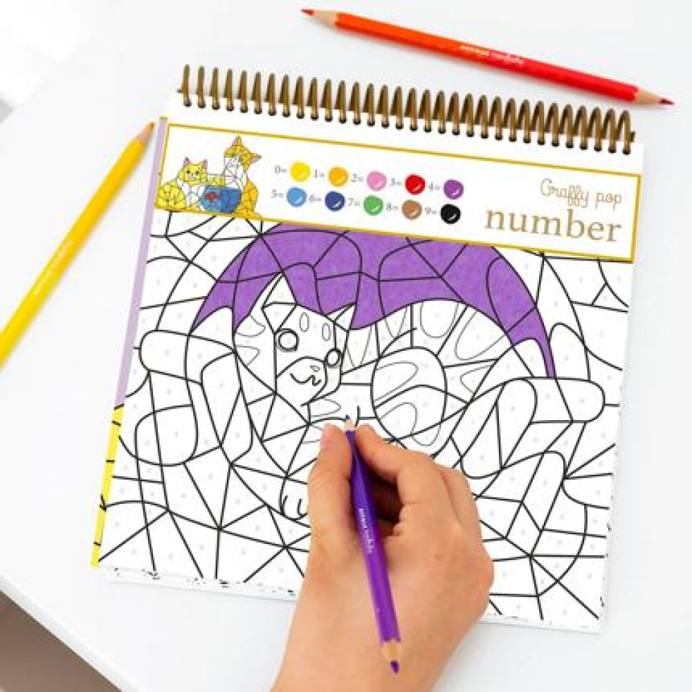 Boek met 24 kleurplaten om te kleuren op nummer. Elke illustratie bestaat uit meerdere genummerde vakken. Aan elk nummer is een bepaald kleur verbonden. Nadat alle vakken zijn ingekleurd, krijg je een prachtige tekening! De ideale manier om kinderen cijfers te leren door te kleuren!
