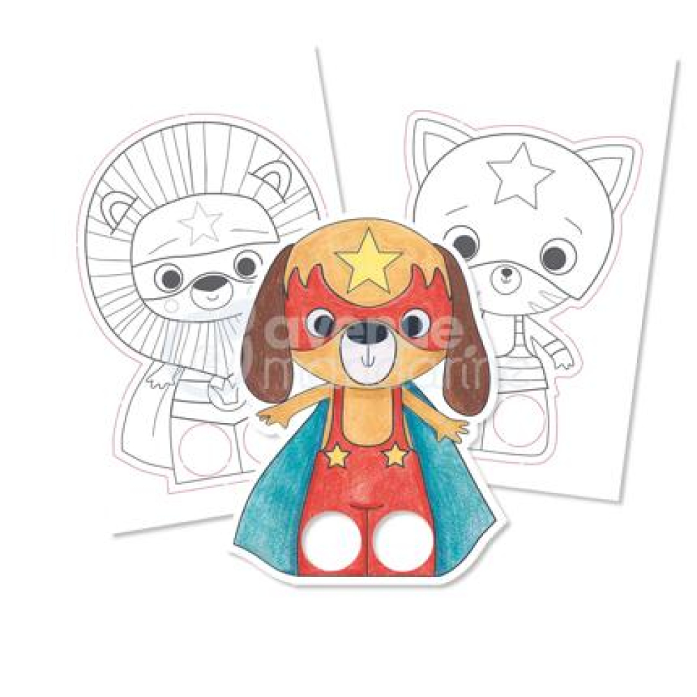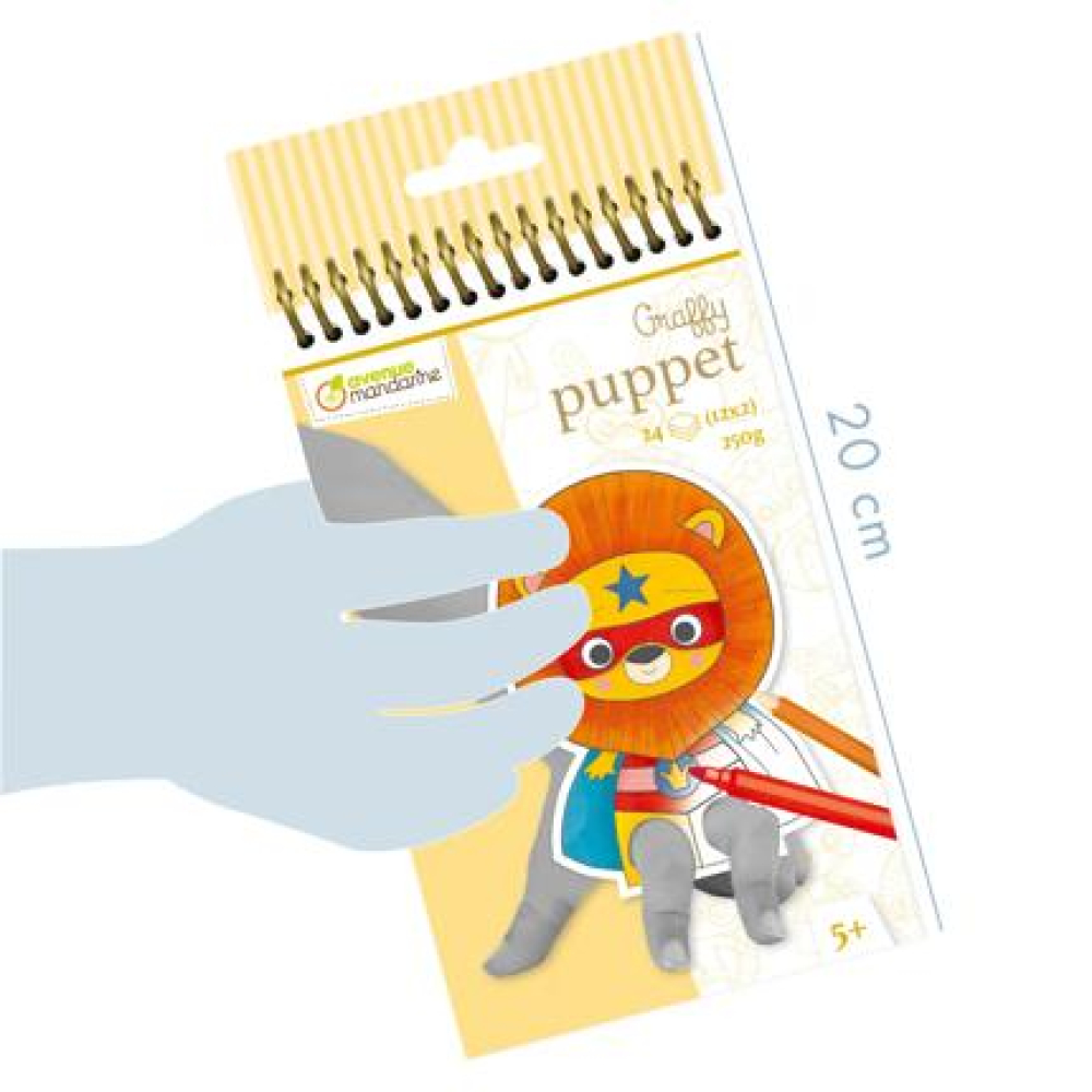 Graffy Puppet, Superhelden Dieren Boekje met 24 handpoppetjes om te kleuren. De figuurtjes zijn gestanst om gemakkelijk uit het boekje te drukken. Leeftijd 5+ 0 0