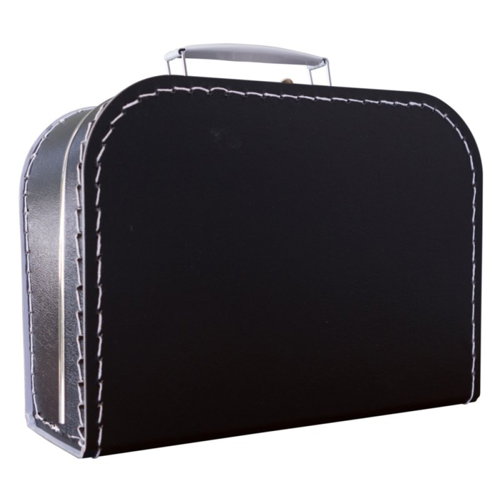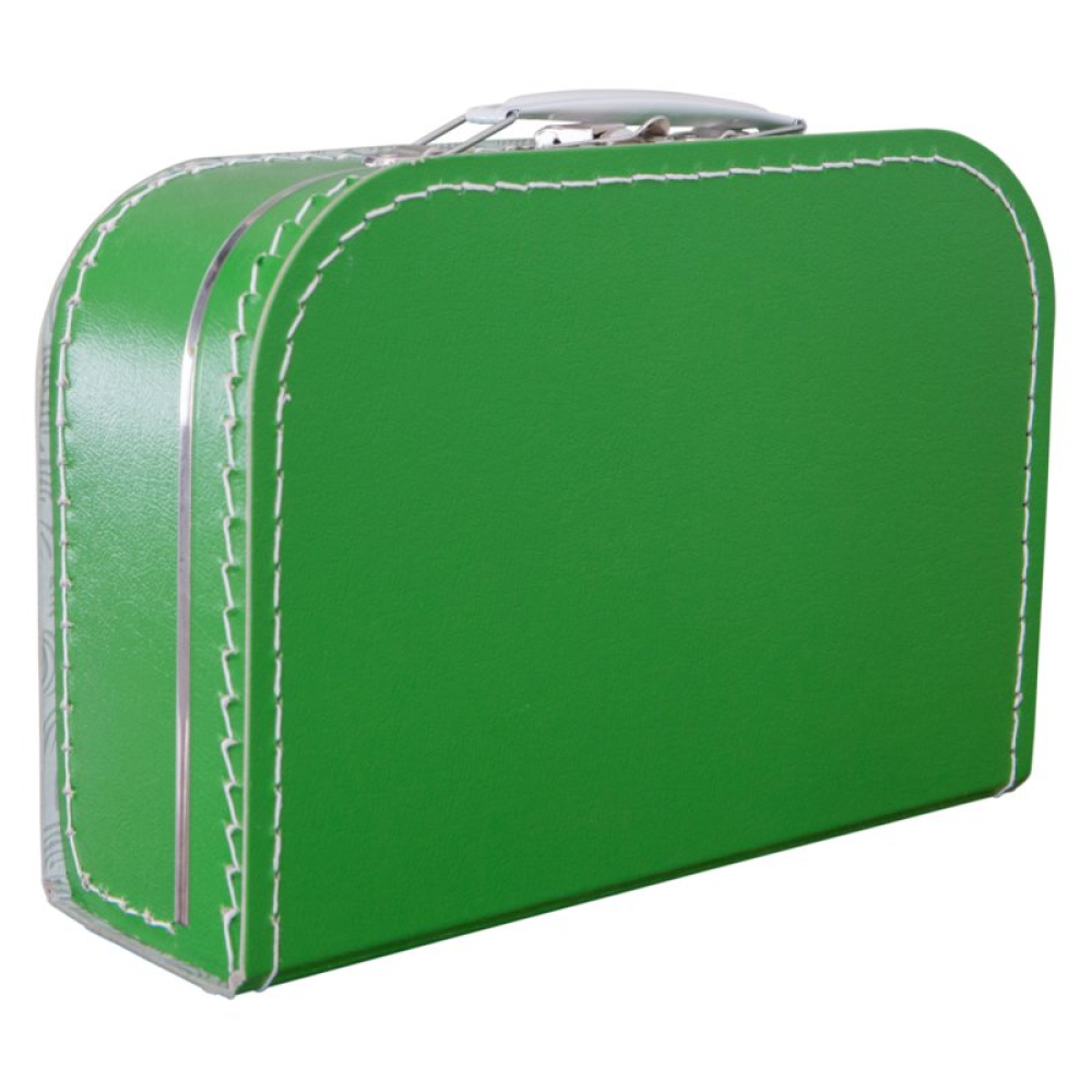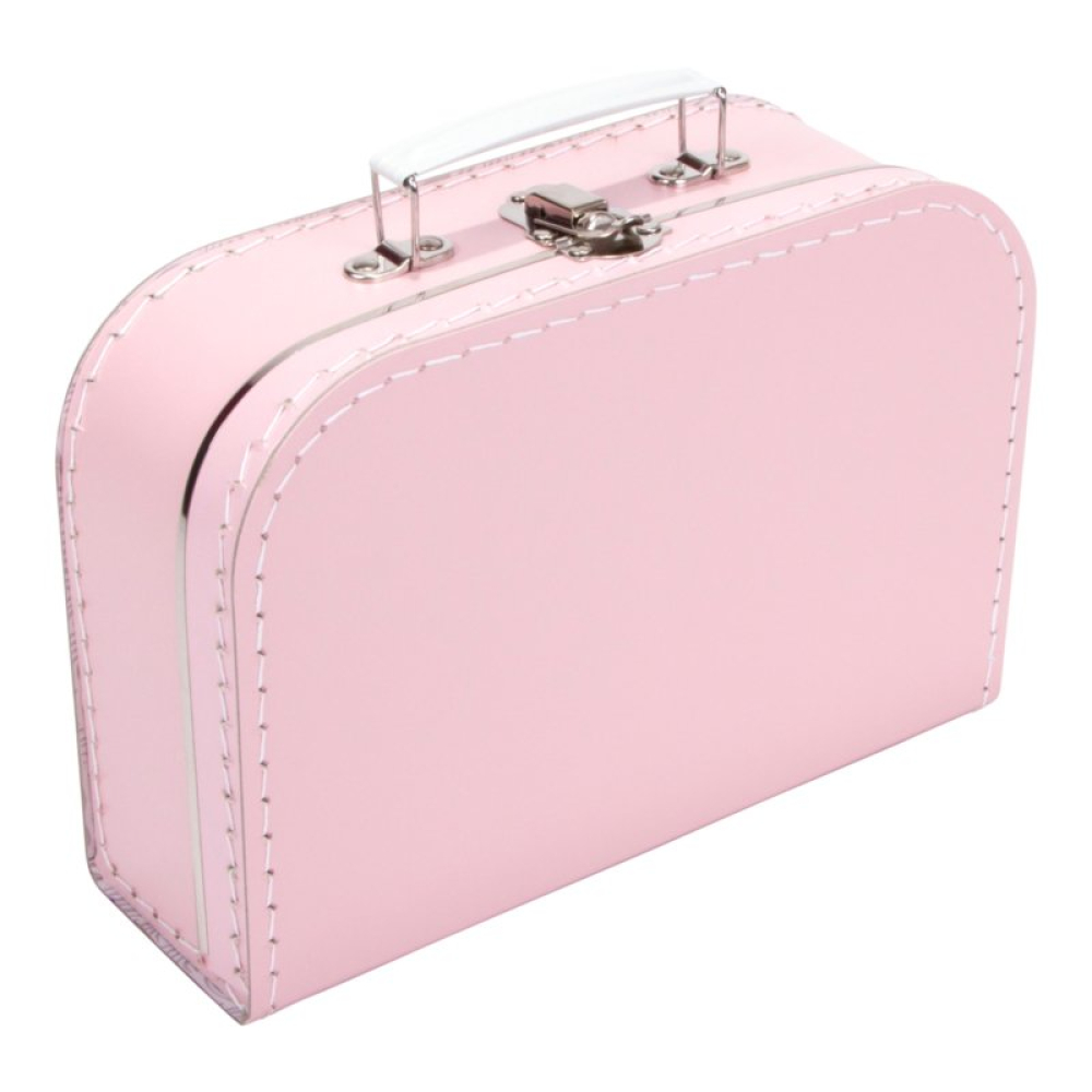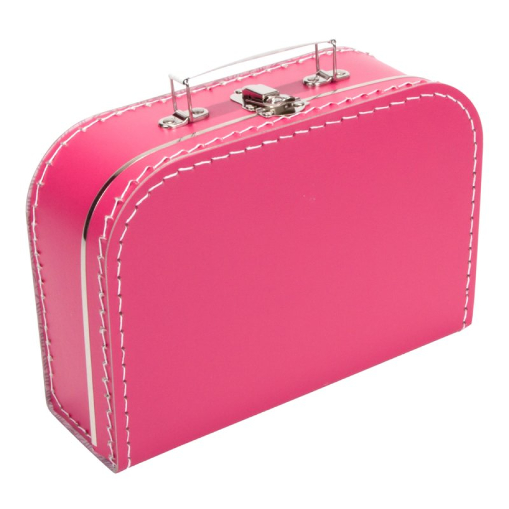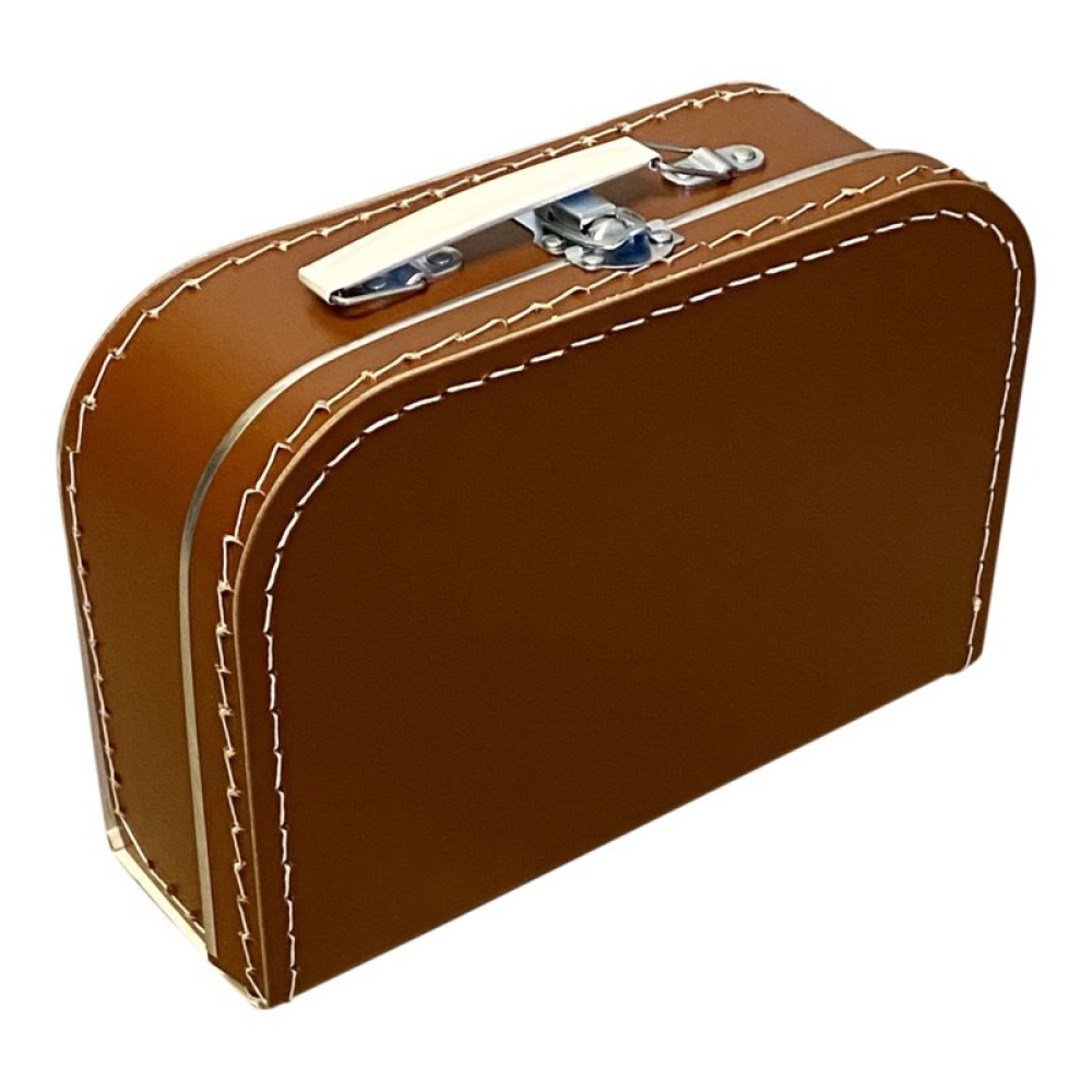 De koffertjes van 25 cm hebben de volgende afmetingen: 25 cm breed x 18 cm hoog x 9 cm diep. Ze zijn gemaakt van dik geplastificeerd karton met nog een papieren laagje aan de binnenkant voor extra stevigheid. Het handvat en de sluiting zijn van metaal. En natuurlijk zijn ze voorzien van metalen randjes aan de deksel en binnenkant voor extra duurzaamheid.