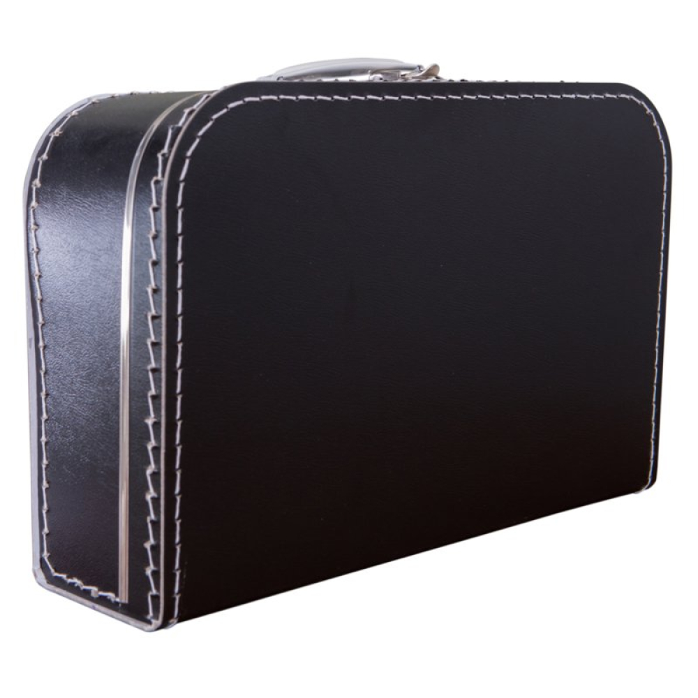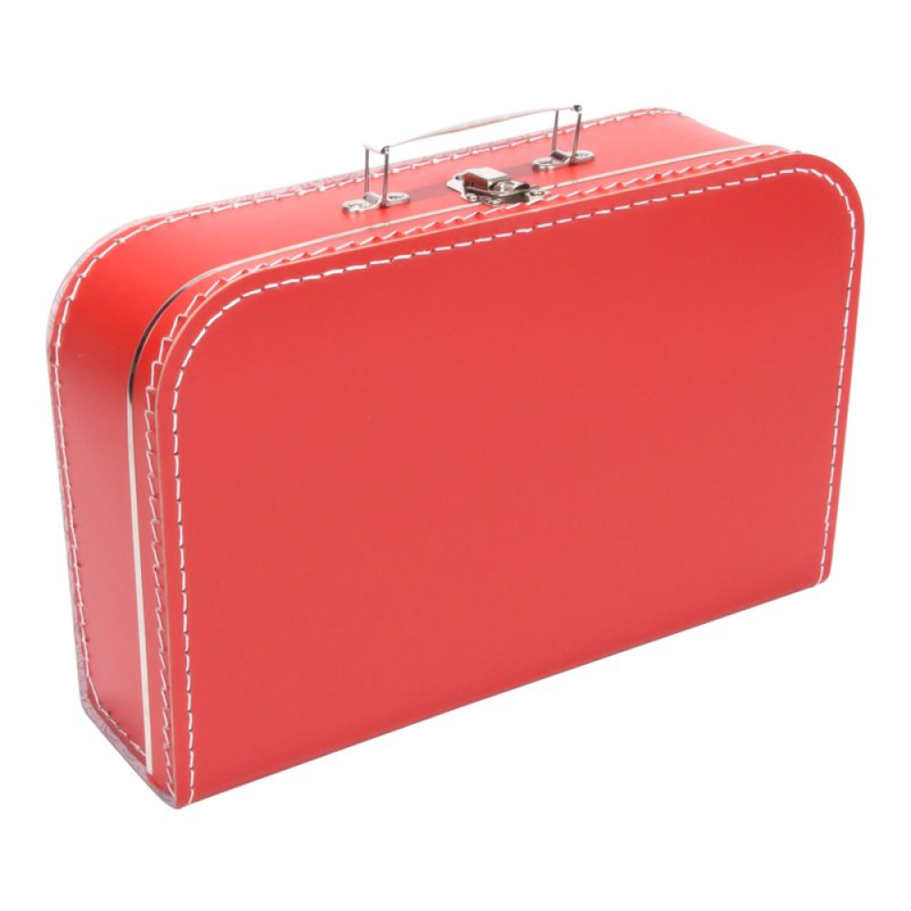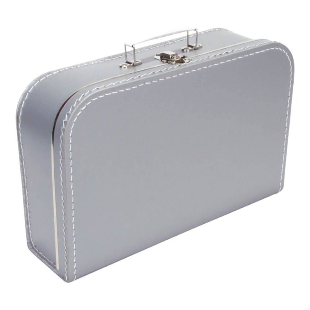 De koffertjes van 35 cm hebben de volgende afmetingen: 35 cm breed x 23 cm hoog x 10 cm diep. Ze zijn gemaakt van dik geplastificeerd karton met nog een papieren laagje aan de binnenkant voor extra stevigheid. Het handvat en de sluiting zijn van metaal. Natuurlijk zijn ze ook voorzien van extra metalen randjes aan de deksel en binnenkant voor extra duurzaamheid.