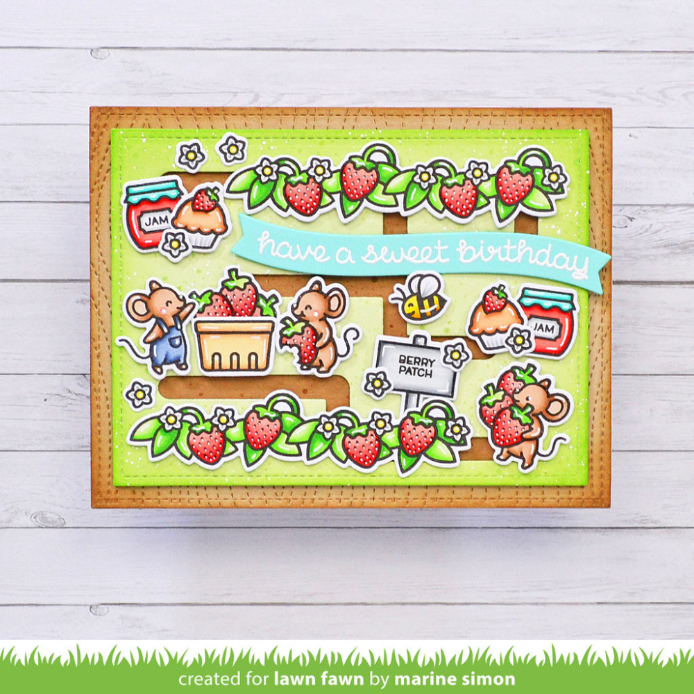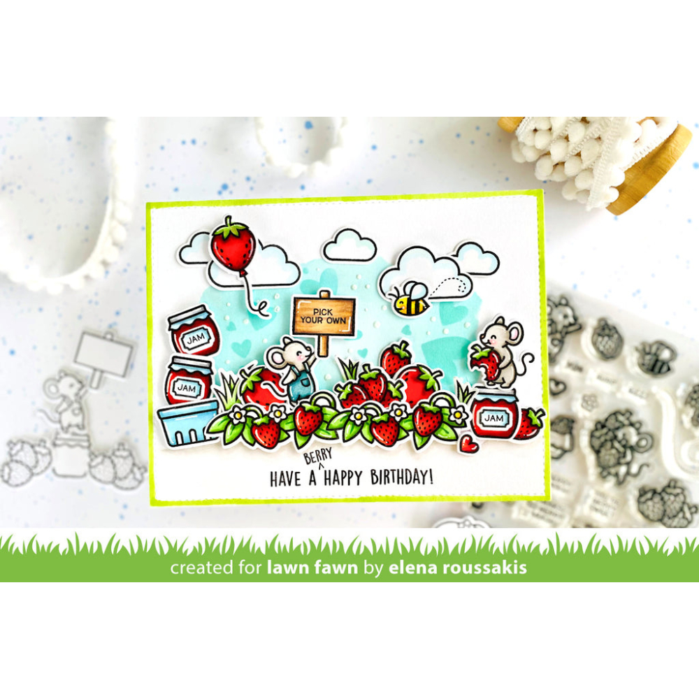 Vertel iemand hoe speciaal ze zijn met deze schattige set! Deze schattige muisjes die van aardbeien houden, staan klaar om je te helpen de perfecte kaart te maken voor een geliefde. Coördinatie van gazonsnijdingen: Berry Special Lawn Cuts. Geschatte maten: zwaaiende muis: 1x7/8 inch; jampot: 5/8x5/8 inch; cupcake: 5/8x1/2 inch; rij aardbeien: 3 1/3x7/8 inch. Met zorg gemaakt in de VS!