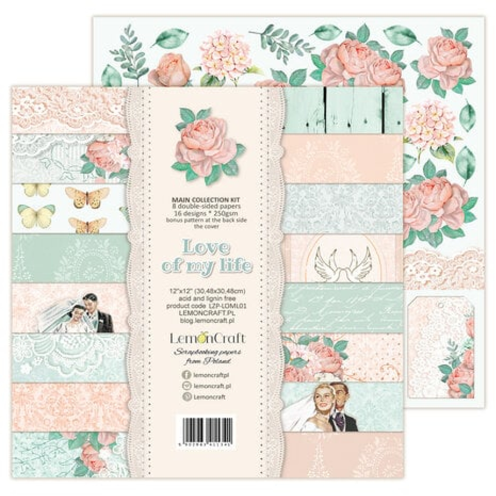 Set of scrapbooking papers 30x30cm - Love Of My Life main collection kit - Lemoncraft. Set contains 6 double-sided papers, 12 designs - 1 piece per design, 250gsm. Bonus pattern at the back of the cover.