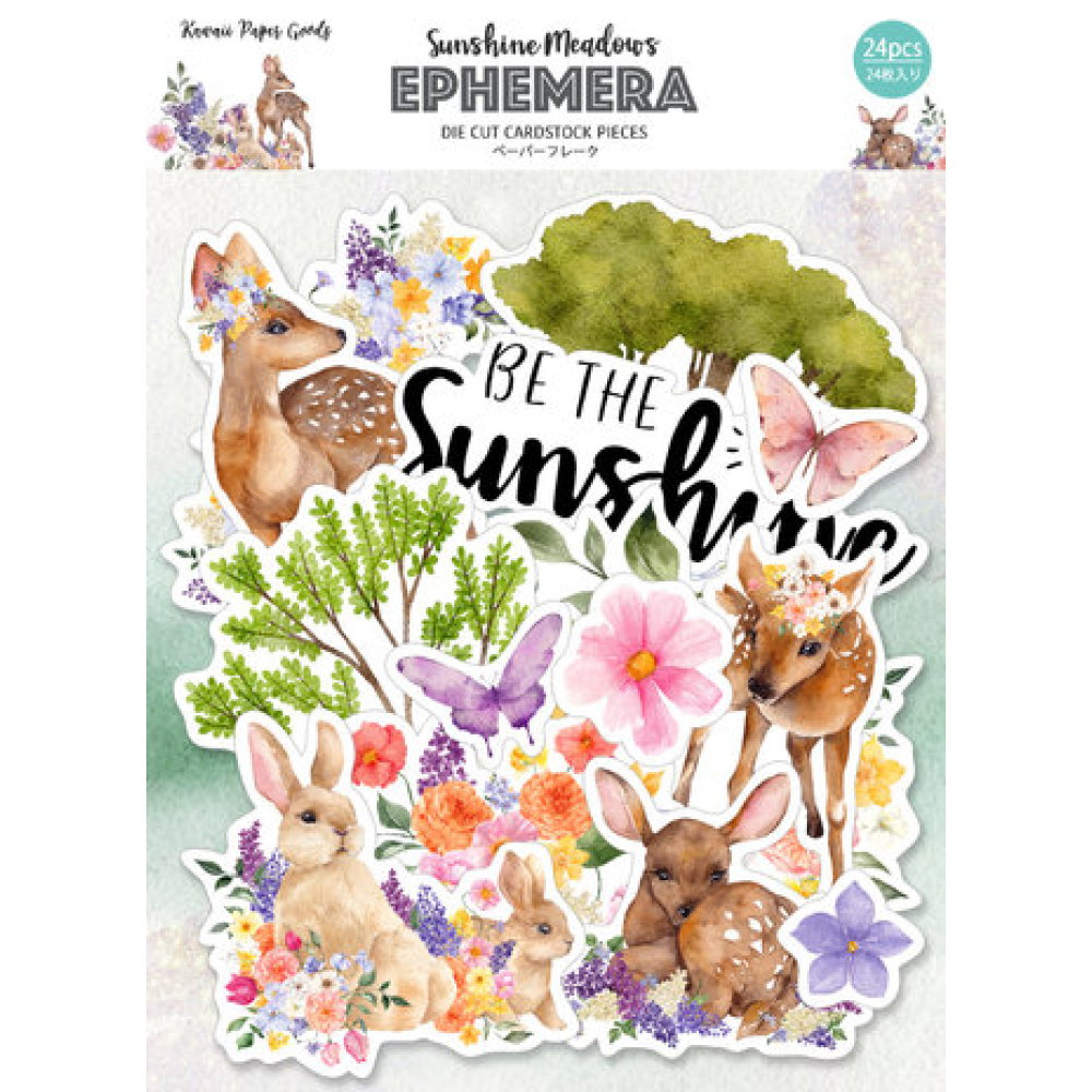 Kawaii Paper Goods. 2022 Vol. 4 Sunshine Meadows includes following products: 12x12 double sided cardstock (12 sheets, 6 designs/2 sheets each); 6x6 double sided cardstock (24 sheets, 6 designs/4 sheets each); Ephemera (24pcs); Collage ORIGAMI Papers (24pcs, 4 designs/6 sheets each); Washi Tape (0.59 in. x 16.4ft / 15mm x 5M); Clear Stamp (3.5x3.5 in. / 89mm x 89mm); Journaling Cards. And more!