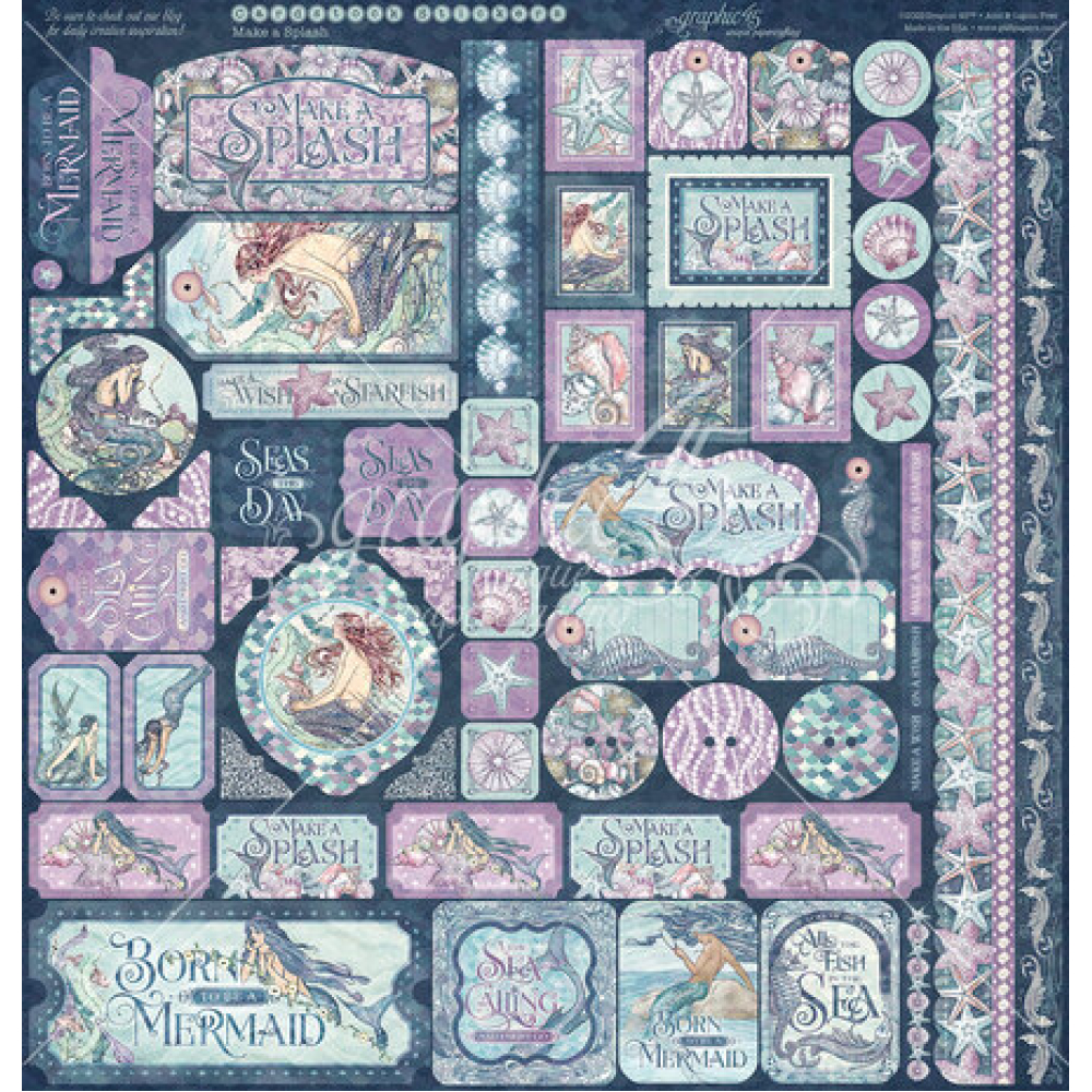 If you were born to be a mermaid, Make a Splash is the collection for you! You will be transported to the magical underwater world filled with mermaids, sea creatures, and sea shells all in shades of seaweed green, dusty blue, and soft lavender. 16 double-sided 12×12-inch sheets – 2 each of 8 designs, 12×12-inch cover-weight sticker sheet, Features easy to use cut-apart and designer papers, Made in the USA – cover-weight papers are acid and lignin free.