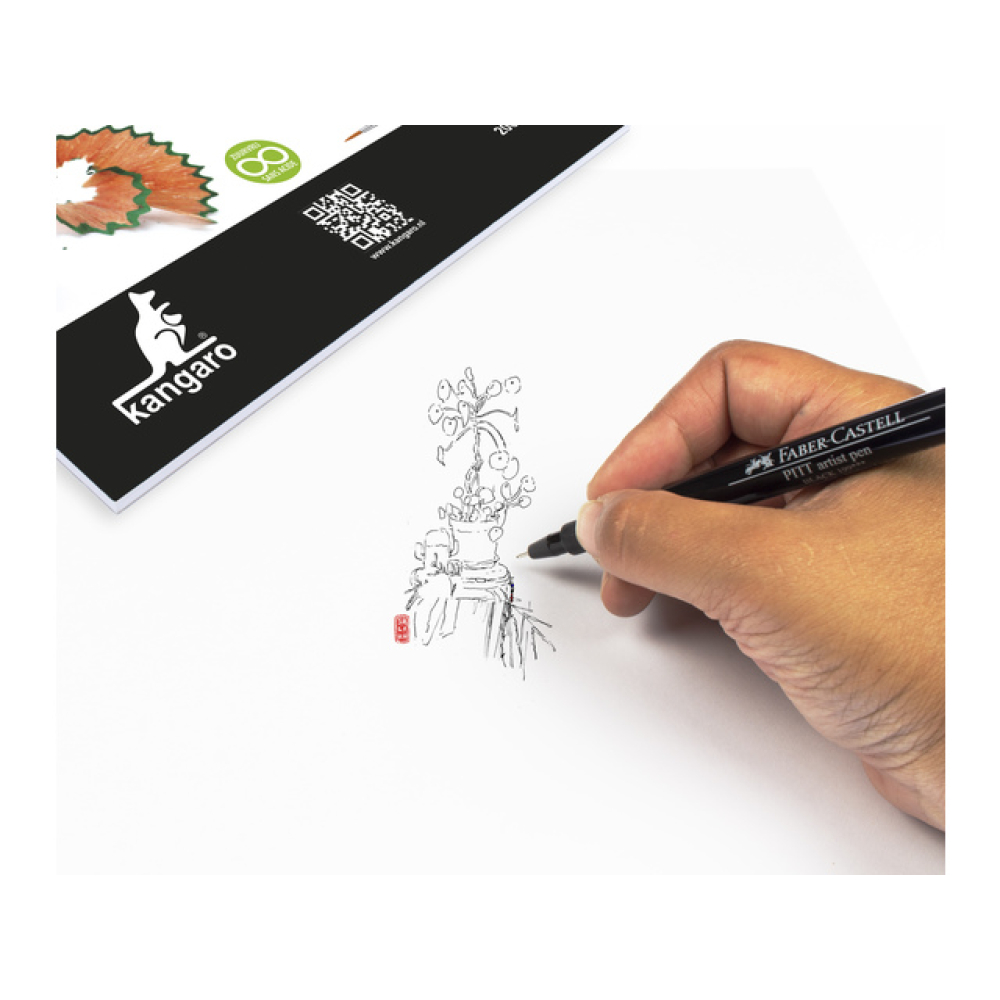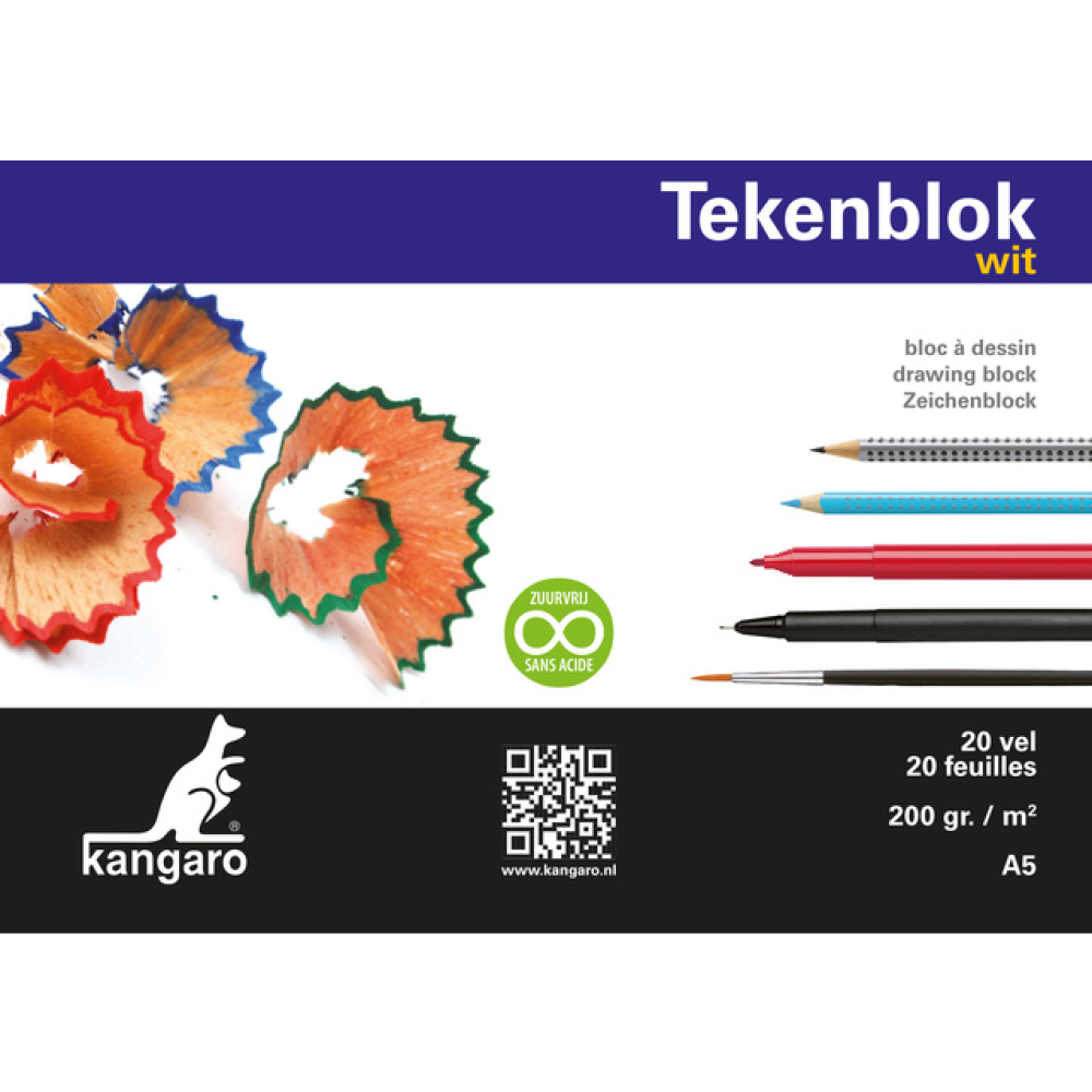 Tekenblok Kangaro A5 eenzijdig gelijmd, 200 grams wit papier 20 vel.