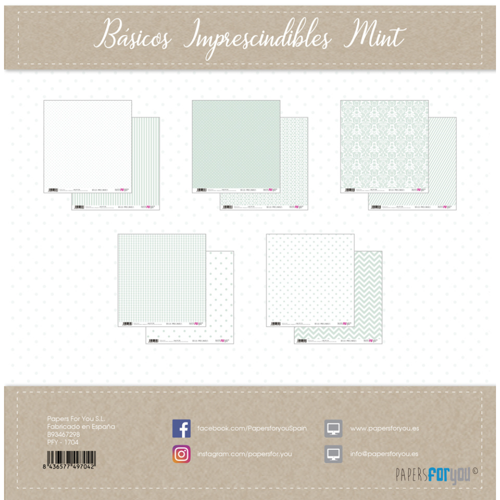 Papers For You Basicos Imprescindibles Mint Scrap Paper Pack (10pcs) (PFY-1704) ( PFY-1704)