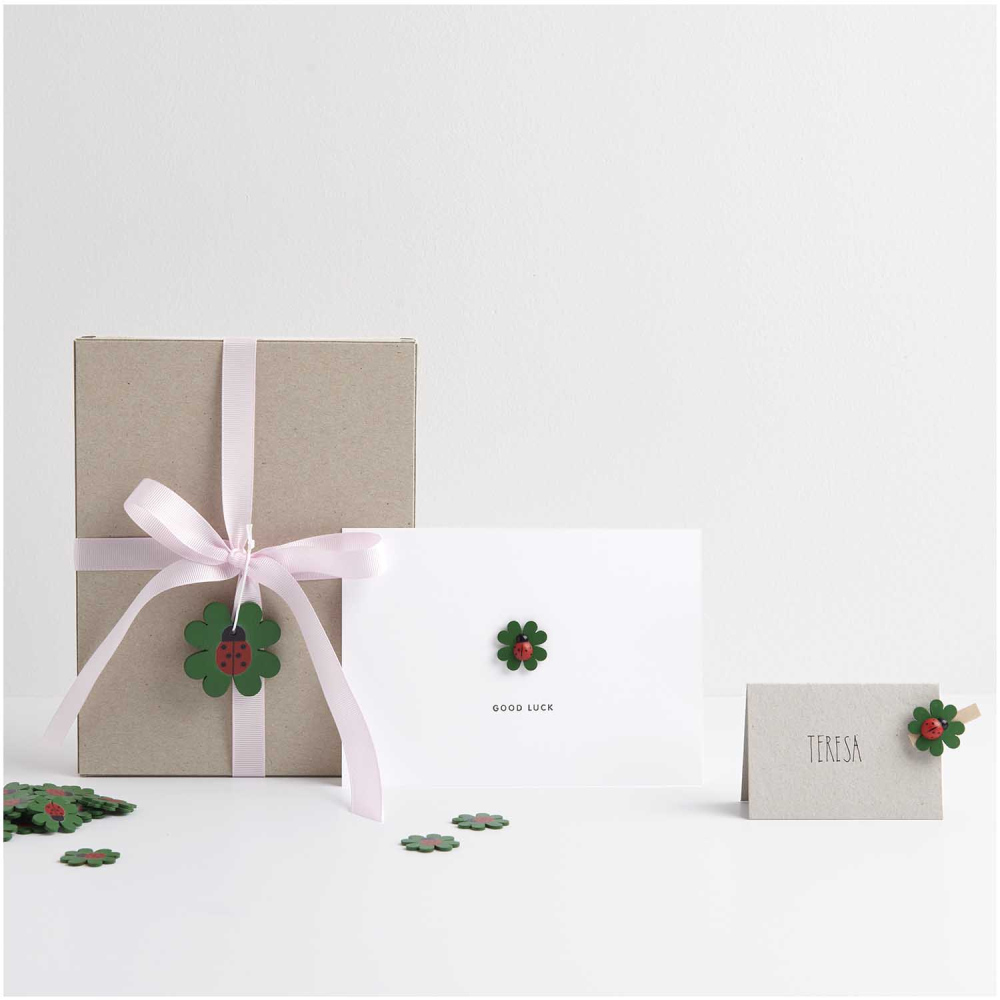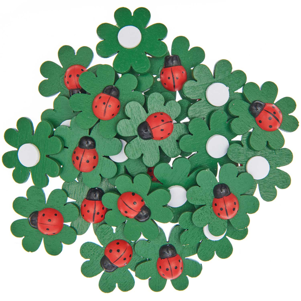 Rico-Design Wooden sticker cloverleaf with ladybug 24 pcs (700430)