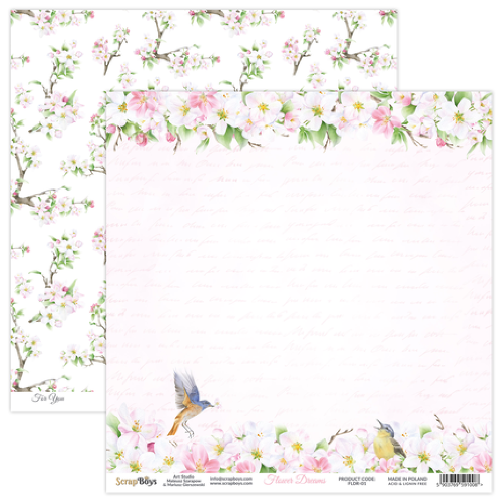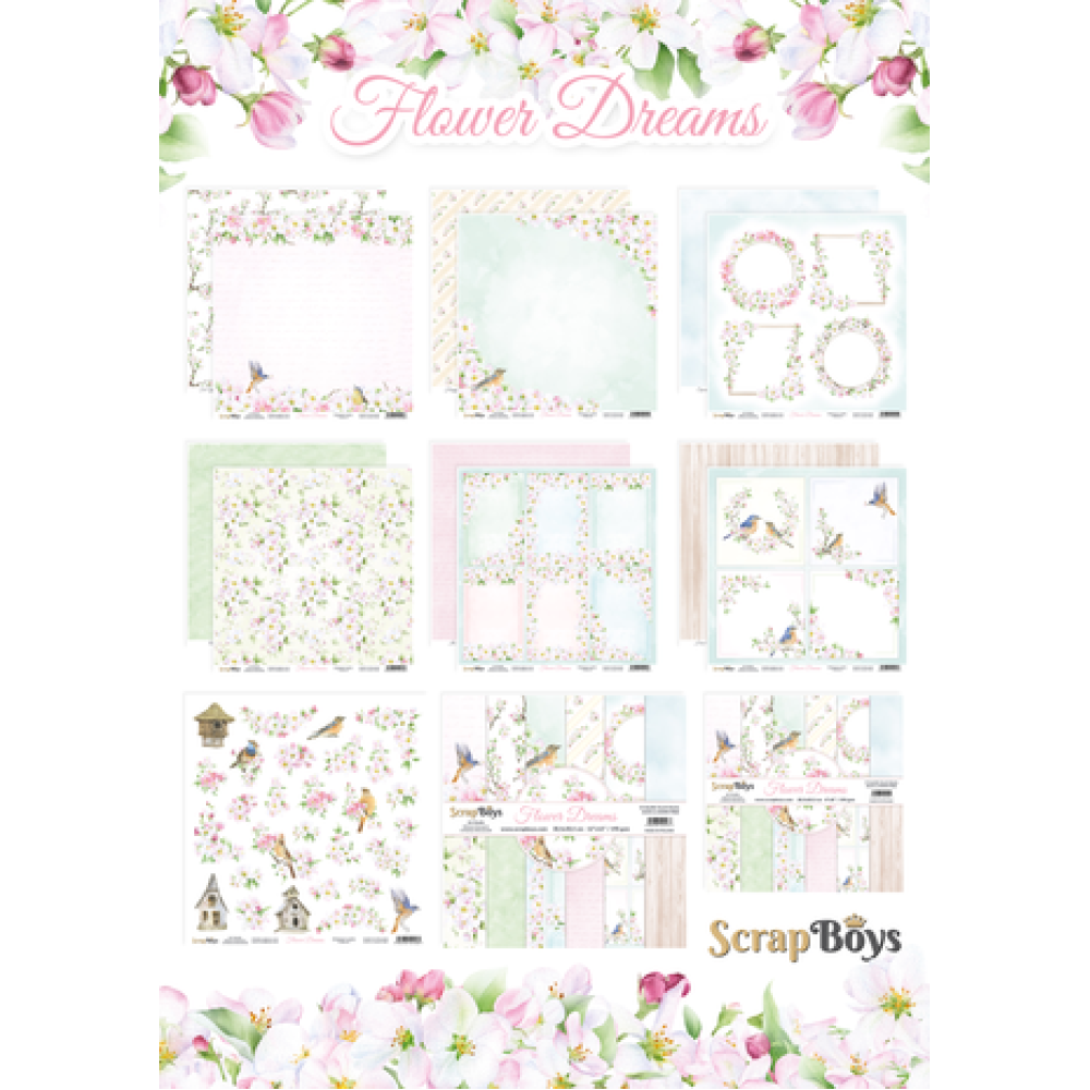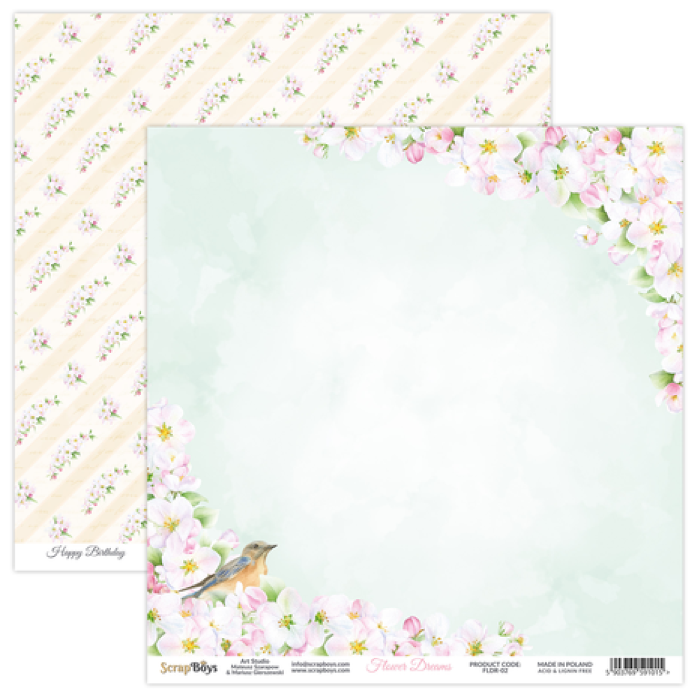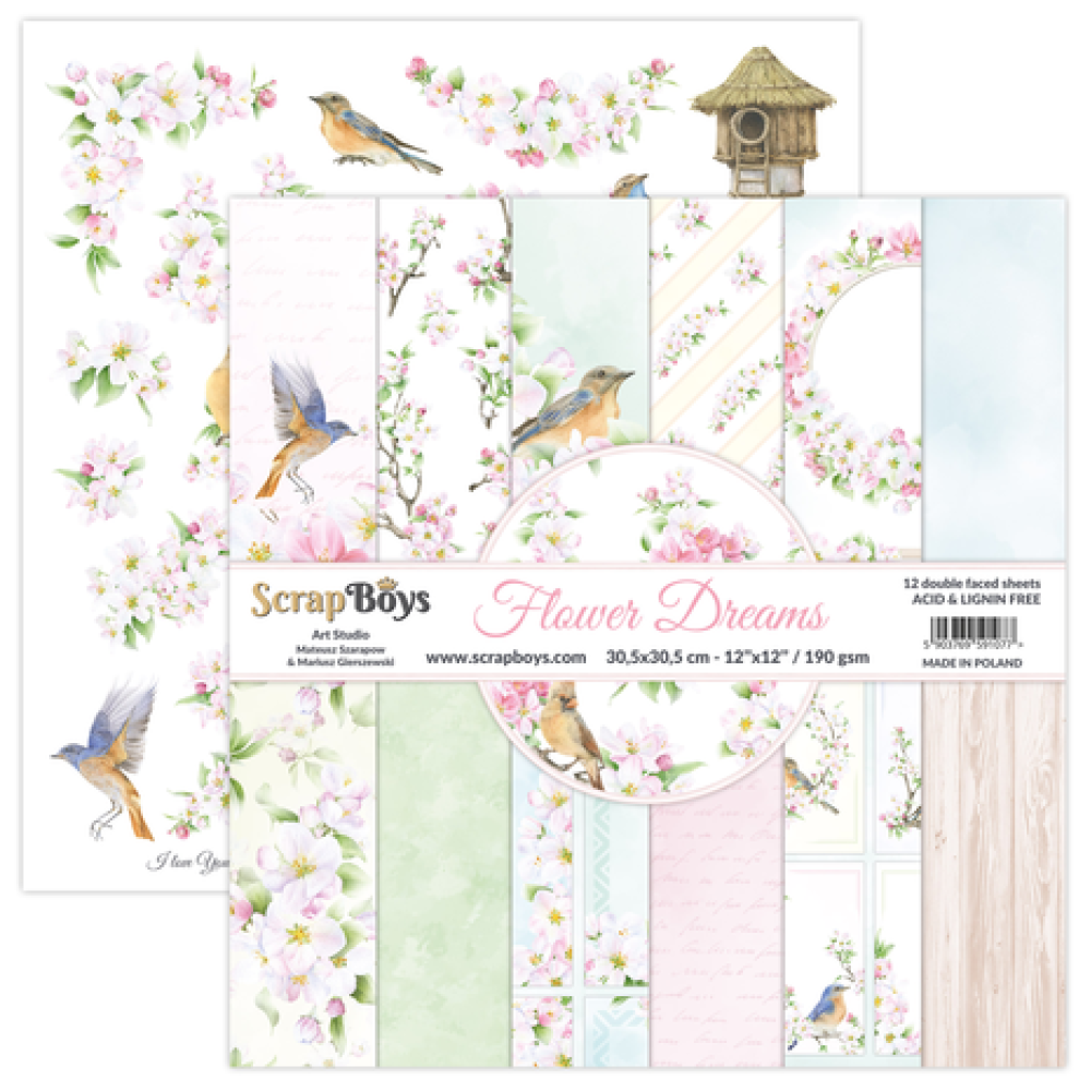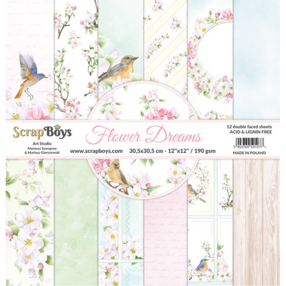 ScrapBoys. Papierpakket: 30,5 x 30,5 cm / 12x12 Inch. Gramgewicht: 190 g/m². 12 dubbelzijdige vellen. Zuur- en ligninevrij. Gemaakt in Polen. FLOWER DREAMS - Een collectie geïnspireerd door de lente en de natuur. Vol met bloemen, vogels en natuurlijk pastelkleuren. Kersenbloesems zijn prachtig en we vonden ze erg mooi, daarom hebben we onze hele collectie eraan gewijd. FLOWER DREAMS is ons voorstel voor alle gelegenheden.