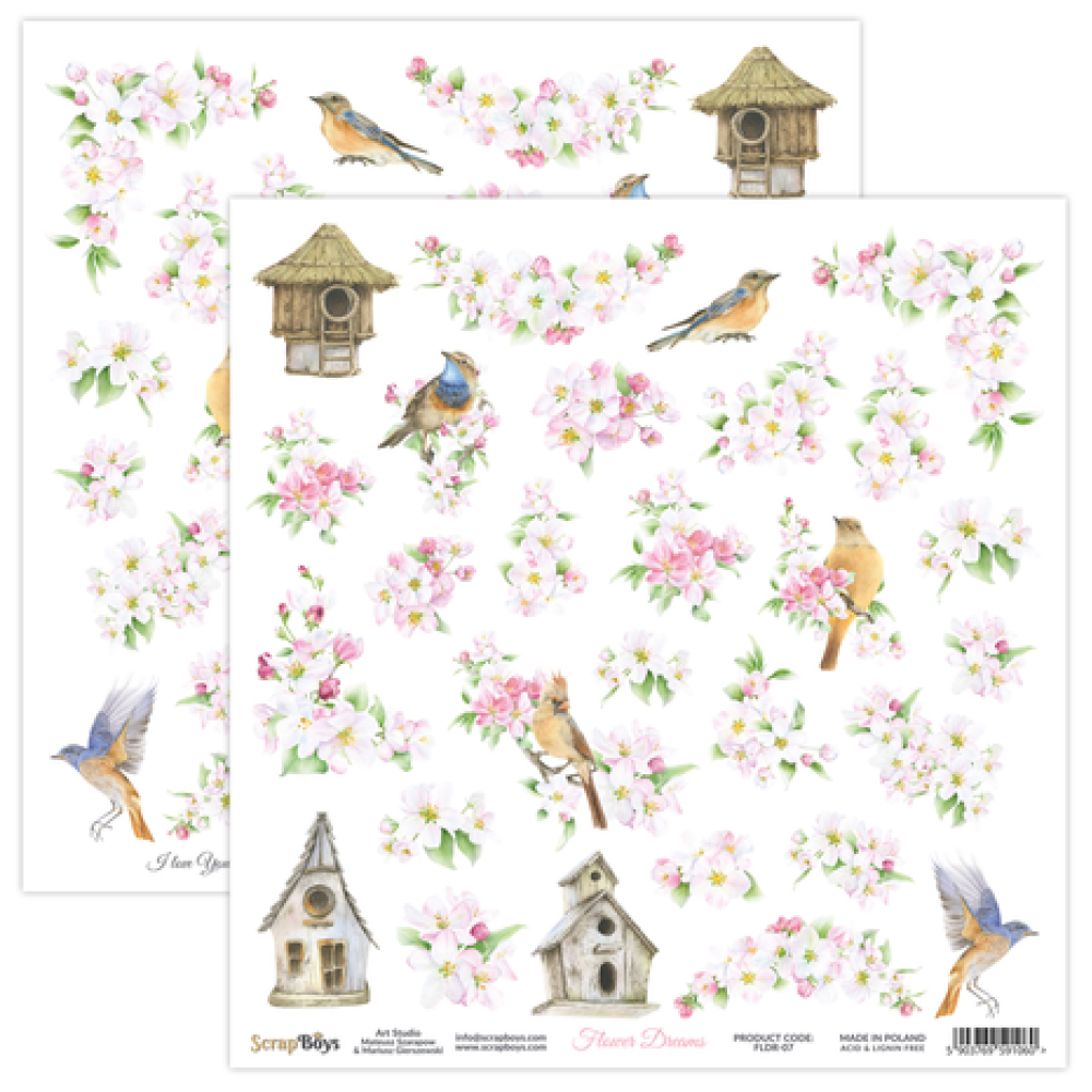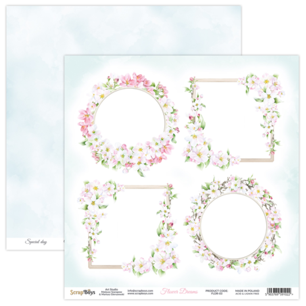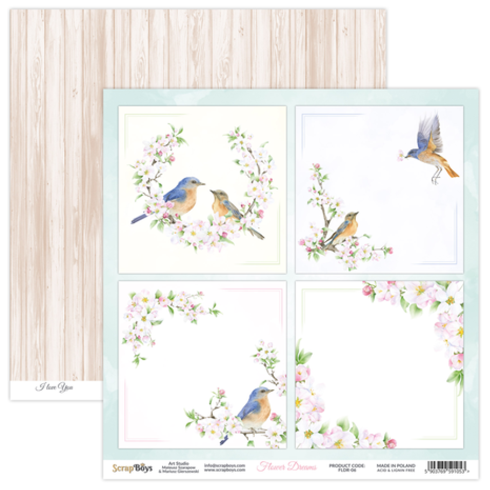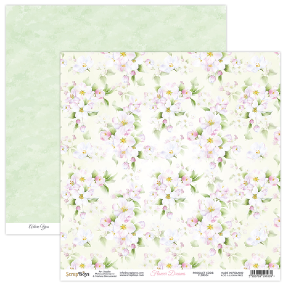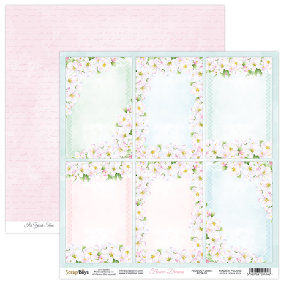 ScrapBoys. Papierpakket: 30,5 x 30,5 cm / 12x12 Inch. Gramgewicht: 190 g/m². 12 dubbelzijdige vellen. Zuur- en ligninevrij. Gemaakt in Polen. FLOWER DREAMS - Een collectie geïnspireerd door de lente en de natuur. Vol met bloemen, vogels en natuurlijk pastelkleuren. Kersenbloesems zijn prachtig en we vonden ze erg mooi, daarom hebben we onze hele collectie eraan gewijd. FLOWER DREAMS is ons voorstel voor alle gelegenheden.