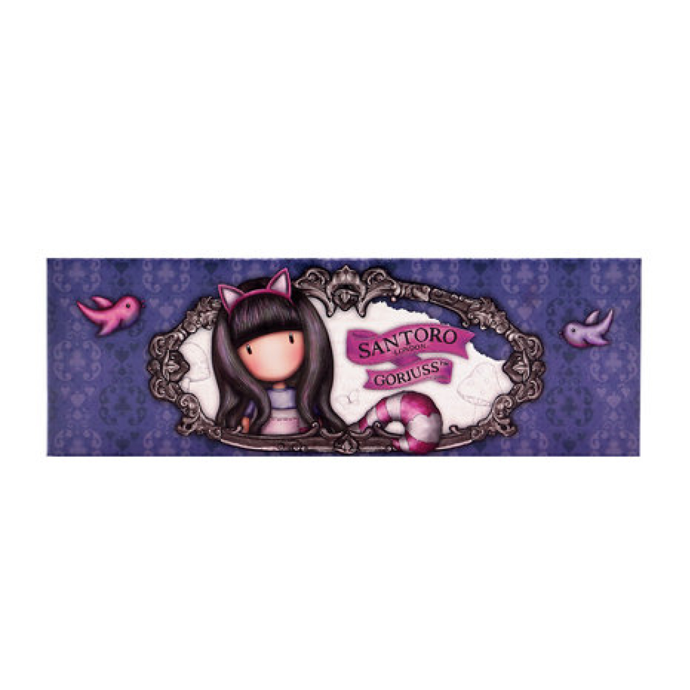 Need somewhere to store your stationery? Introducing our rich purple Cheshire Cat pencil box. Features the playful Gorjuss icons and artwork and a magnetic closure to keep your stationery super safe. Key Features: Magnetic closure. Approx Measurements: 20x4x7 cm. Material: Paperboard.