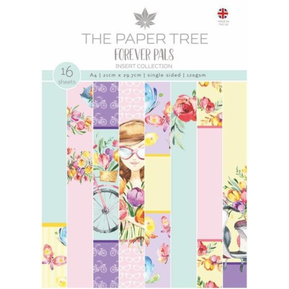 The Paper Tree - Forever Pals - Insert Collection - Beautiful selection solid colours to complement the mix of loosely drawn set of pretty designs with a feeling of a fun outdoor spring. Perfect for creating a wide array of coordinating paper crafts. The pads are designed to be used on their own or mixed and matched. The A4 insert pad is 16 sheets of single sided papers in 120 gsm weight. The range also includes the Decorative Backing Papers, Die Cut Sheets, and the Essential Colour Card, all in A4 format. Made in UK.