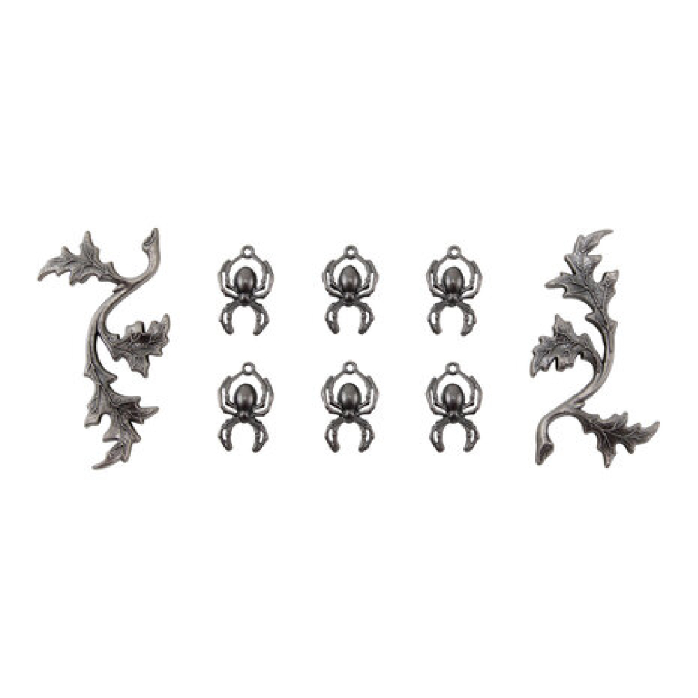 When your next Halloween project requires something a wee bit wicked, this pack of metal spiders and tree branch charms will do. Constructed of metal, branches measure 2" in length, spiders measure 7/8".