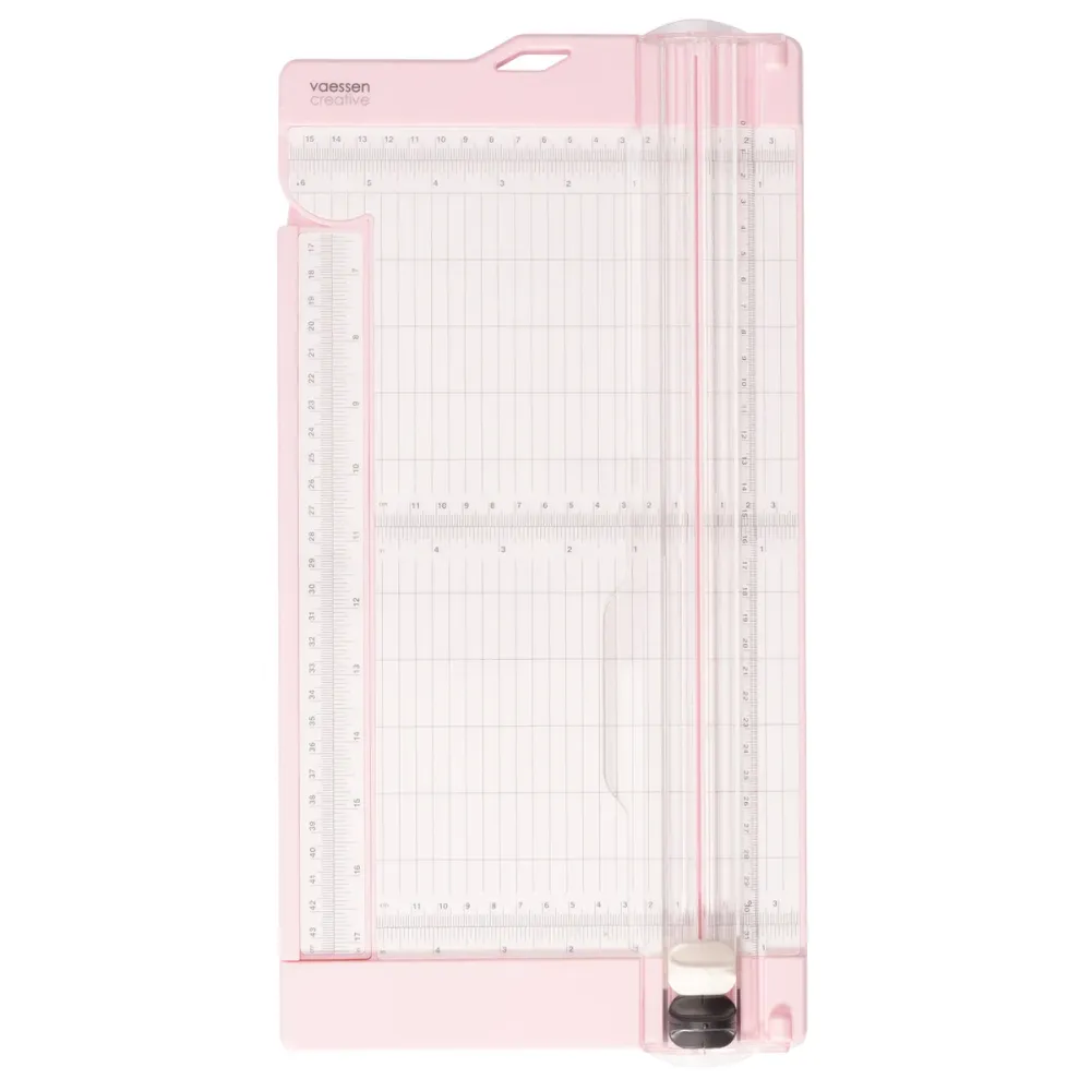 - De aangegeven maten op de papiersnijder zijn zowel in cm als in inches.