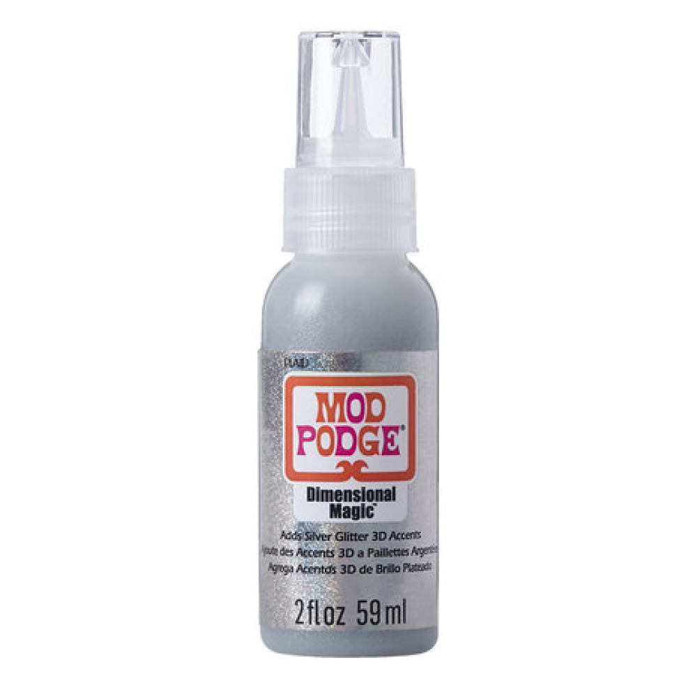 Met Mod Podge Dimensional Magic, Silver Glitter kun je dimensie toevoegen aan je kunsten en ambachten. Deze epoxy-achtige formule creëert een namaakglasachtig effect dat opdroogt met een glinsterende afwerking en een 3D-koepelvorm. Gebruik Mod Podge Dimensional Magic om sieraden te maken, papier te knutselen en meer. De fles heeft een gebruiksvriendelijke schrijftip - perfect voor ingewikkeld detailwerk aan kleine decoupageprojecten. Laat uw project 24 uur drogen voor het beste resultaat. Deze blijvende formule zakt niet uit of loopt niet uit en kan op verschillende oppervlakken worden gebruikt, waaronder hout, canvas, terracotta en nog veel meer. Maak Mod Podge Dimensional Magic een onderdeel van je tekenbenodigdheden voor dat extra vleugje karakter en textuur.