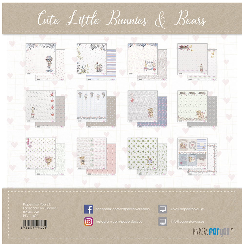 Papers For You Cute Little Bunnies and Bears Scrap Paper Pack (12pcs) (PFY-1420) ( PFY-1420)
